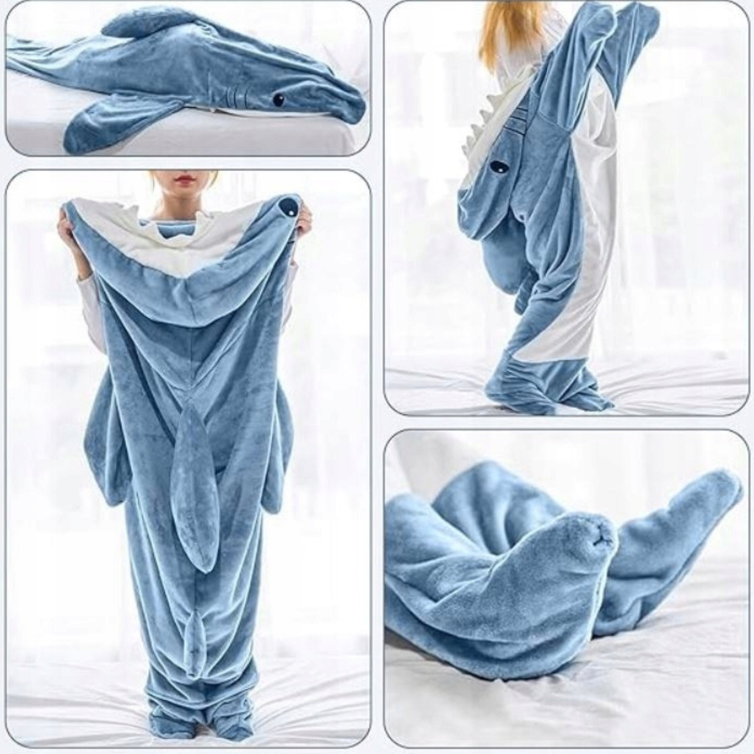 ➡ Zanurz się w rekinowej przytulności dzięki naszemu wyjątkowemu kocowi w kształcie rekina! Ten ciepły, miękki i zabawny kostium otuli Cię w chłodne zimowe wieczory, zapewniając wyjątkowy komfort i dawkę humoru. Idealny jako koc, piżama, śpiwór lub kostium na imprezę tematyczną – wszechstronny i niezastąpiony!