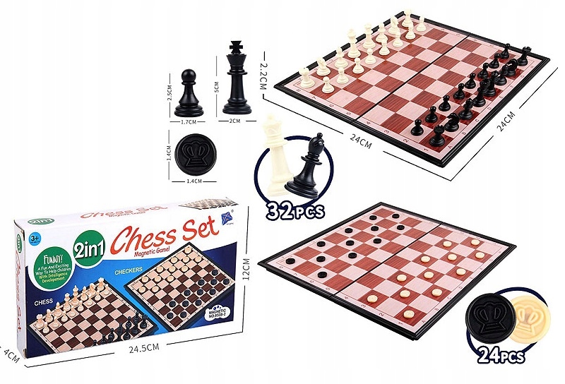 ✨W zestawie: magnetyczna plansza, pionki do szachów, pionki do warcabów.