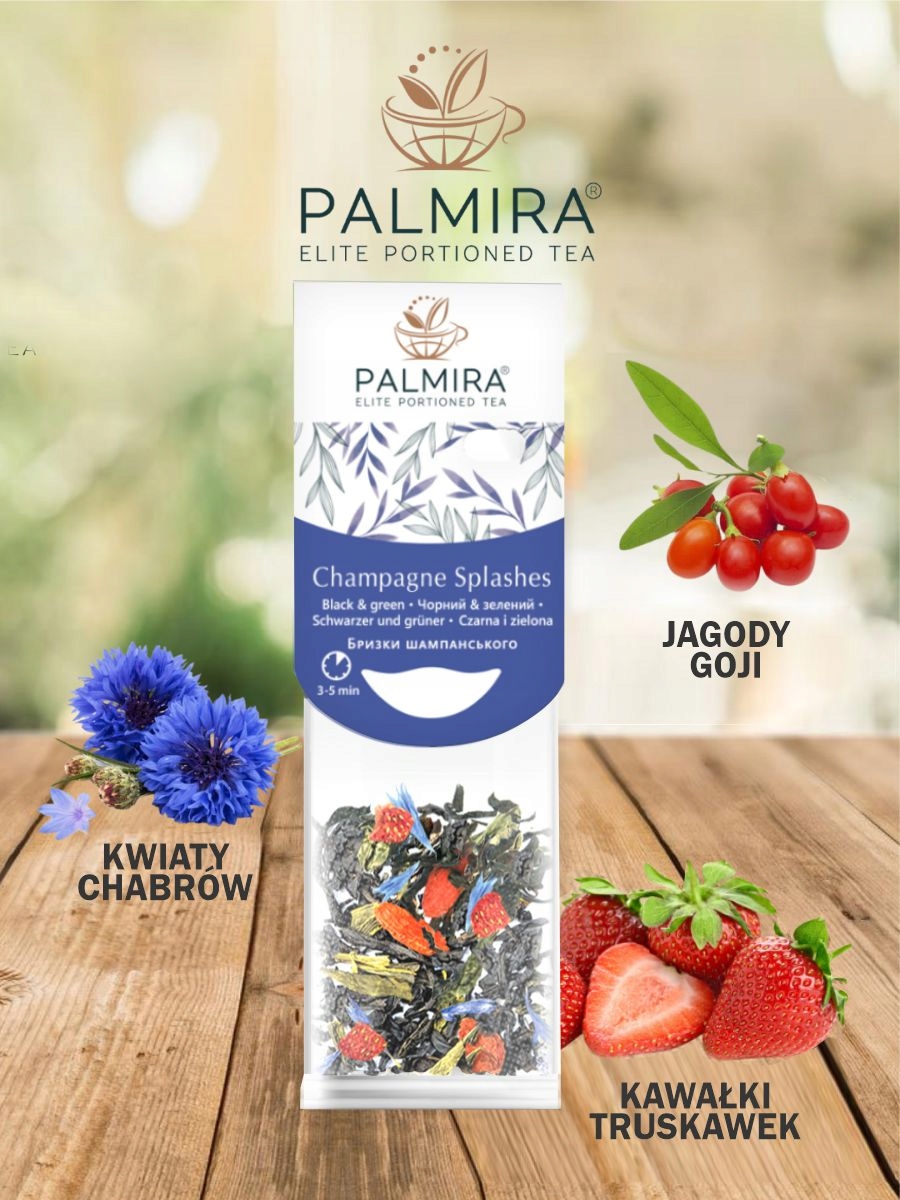 Champagne Splashes – wyjątkowa mieszanka czarnej i zielonej herbaty z owocowym akcentem.