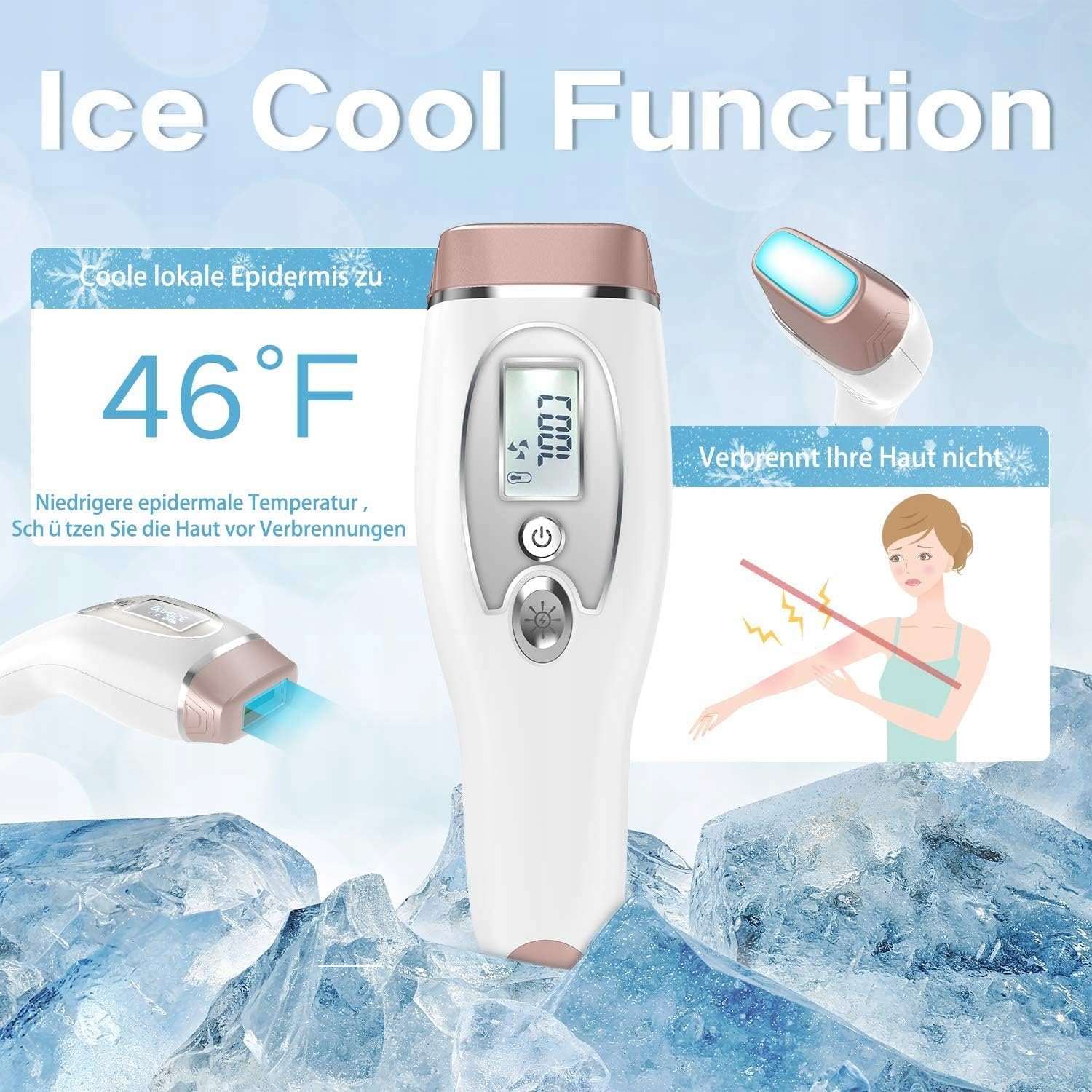 Zaawansowany system chłodzenia lodem skutecznie łagodzi podrażnienia i redukuje widoczność porów. Wbudowany czujnik skóry zapewnia emisję energii wyłącznie przy prawidłowym (90°) ustawieniu głowicy.
