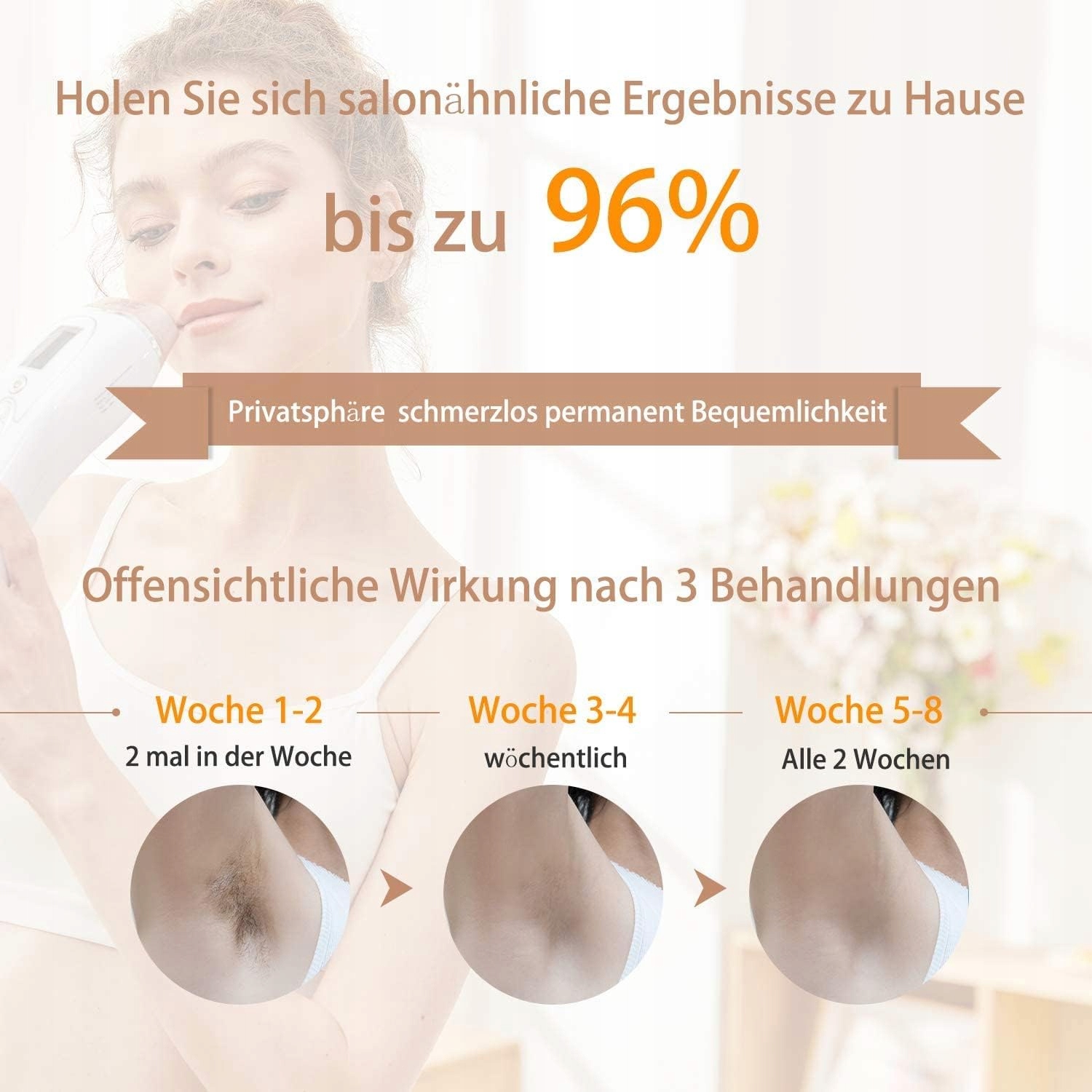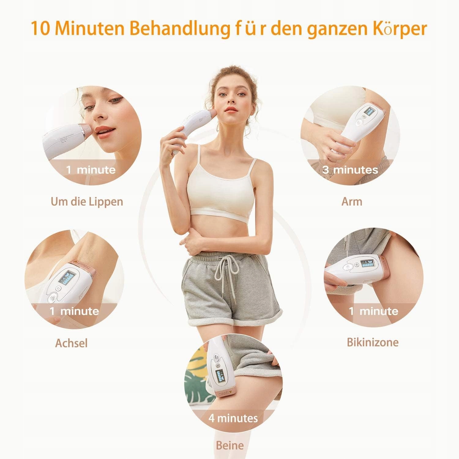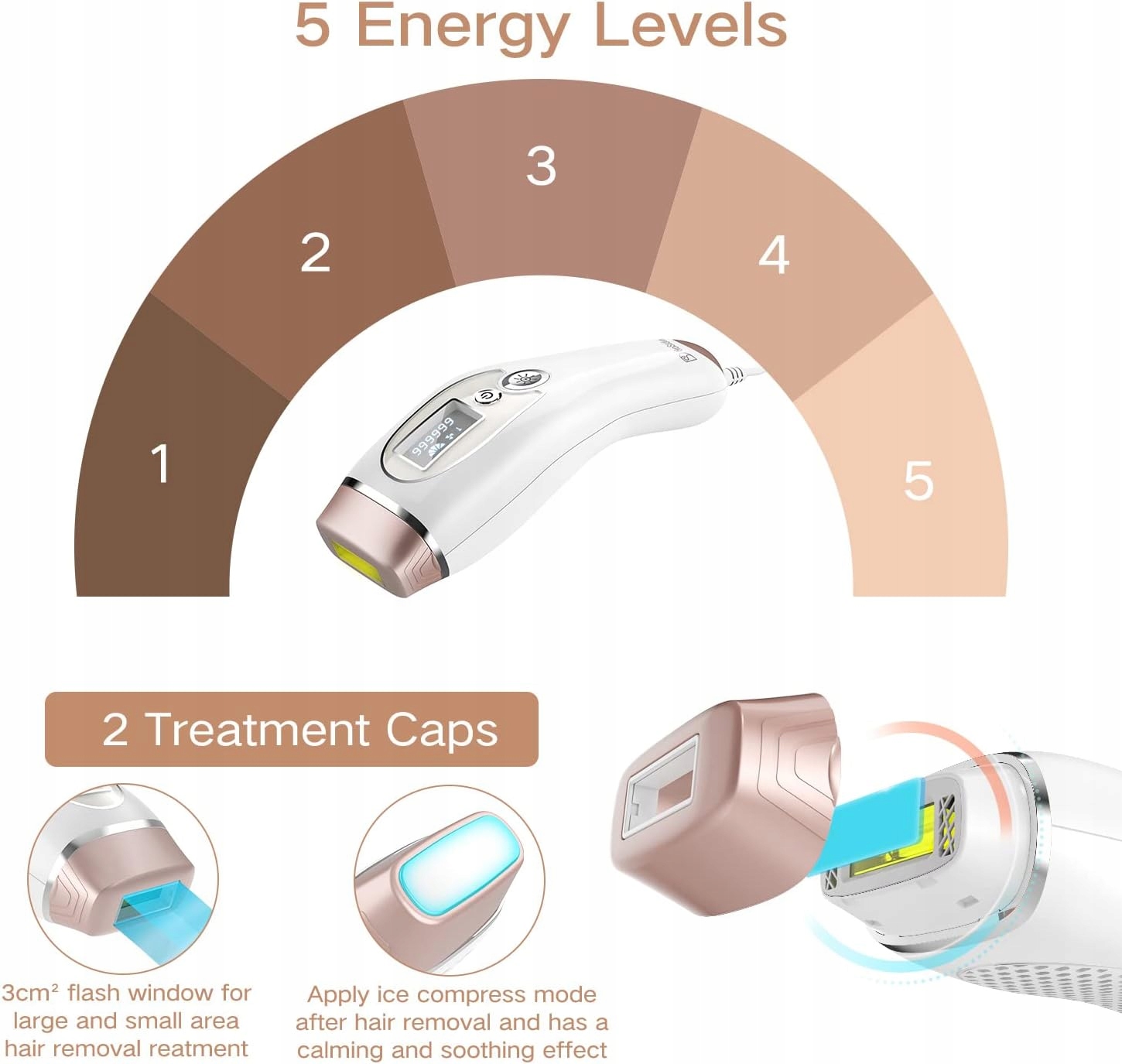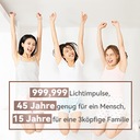 Urządzenie oferuje do 999,999 impulsów świetlnych, zapewniając profesjonalne efekty w warunkach domowych. Nieodpowiednie dla ciemnej karnacji i jasnych włosów.