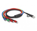 Kabel ładowarki Delock 4 w 1 umożliwia ładowanie urządzeń mobilnych takich jak tablety, smartfony, oferując wszechstronność dzięki trzem interfejsom: Lightning, Micro USB-B oraz USB typu C. Dzięki temu rozwiązaniu eliminuje się konieczność zabierania kilku kabli, a wysoka jakość wykonania oraz solidna konstrukcja zapewniają trwałość i niezawodność.