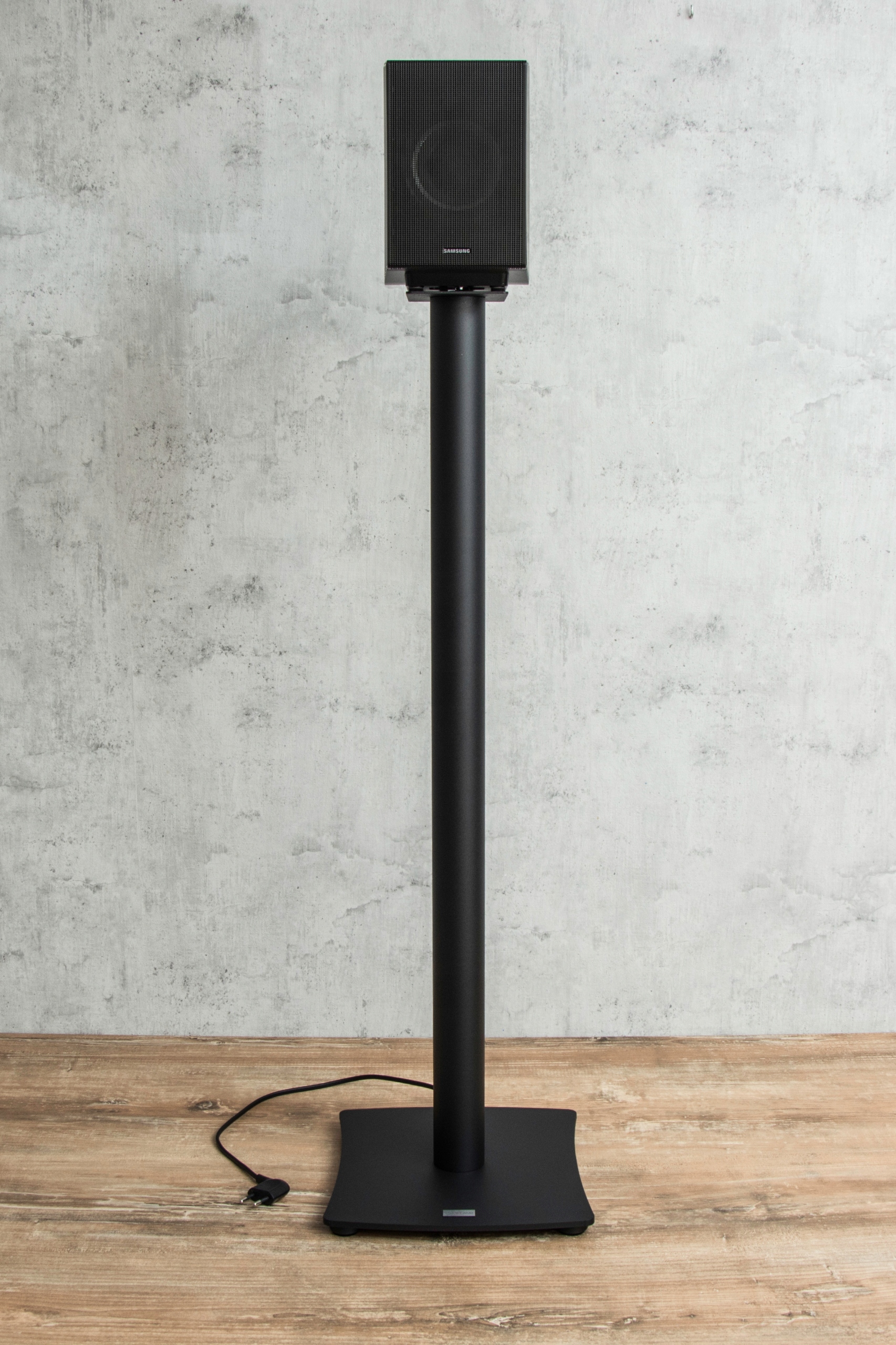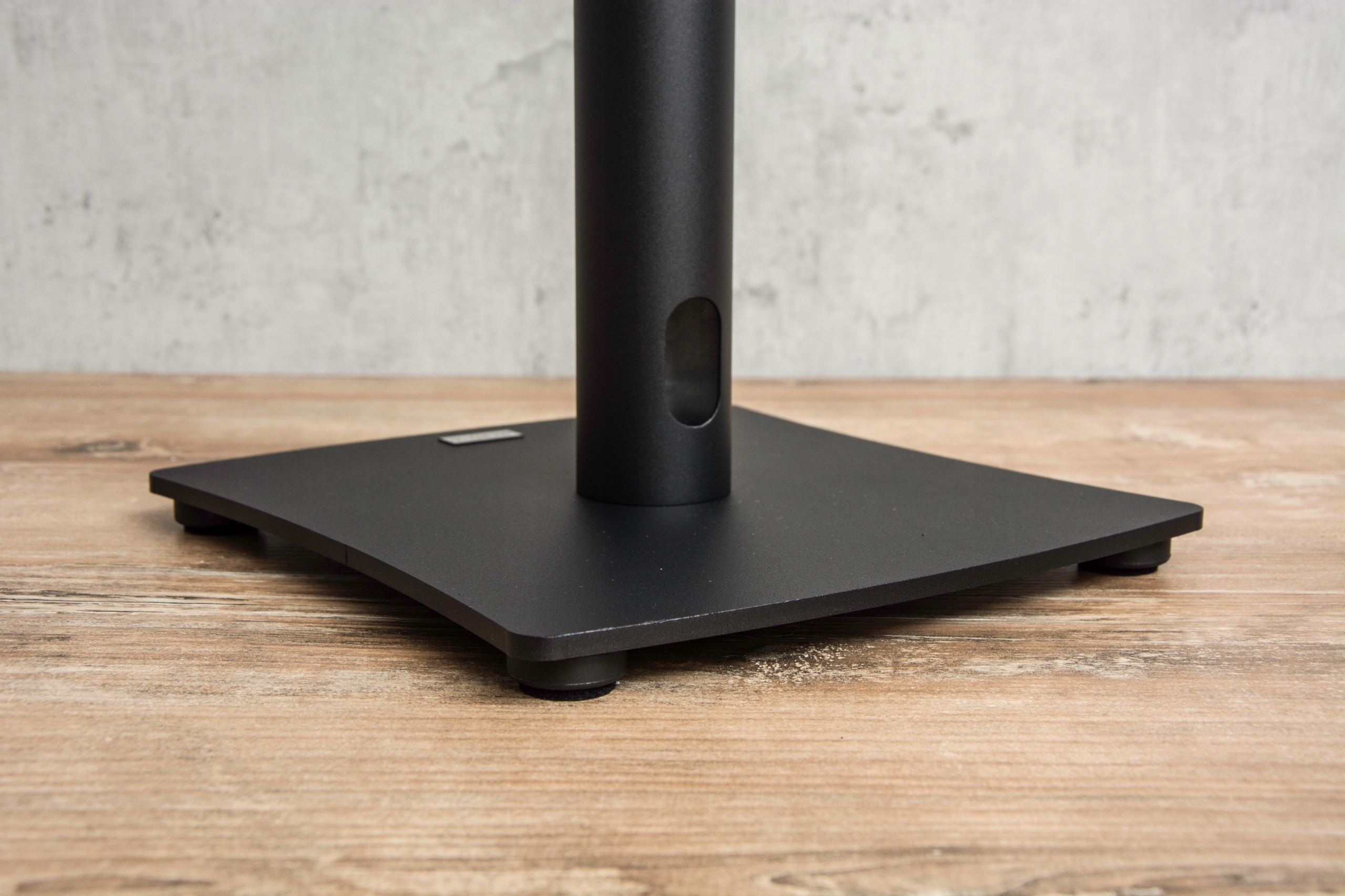 Podstawka głośnikowa wykonana z wysokiej jakości aluminium oraz stali lakierowanej proszkowo.