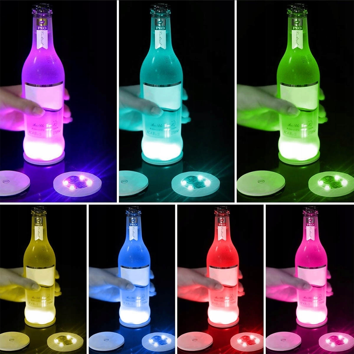 ✔️UZYSKANIE ULEPSZONEJ OŚWIETLENIA RGB: Nasze LED-świetliki pod kieliszki można ręcznie przełączać na 7 indywidualnych kolorów (czerwony/zielony/niebieski/żółty/błękitny/světle fialový/biały) oraz 1 tryb mrugania mieszanych kolorów.