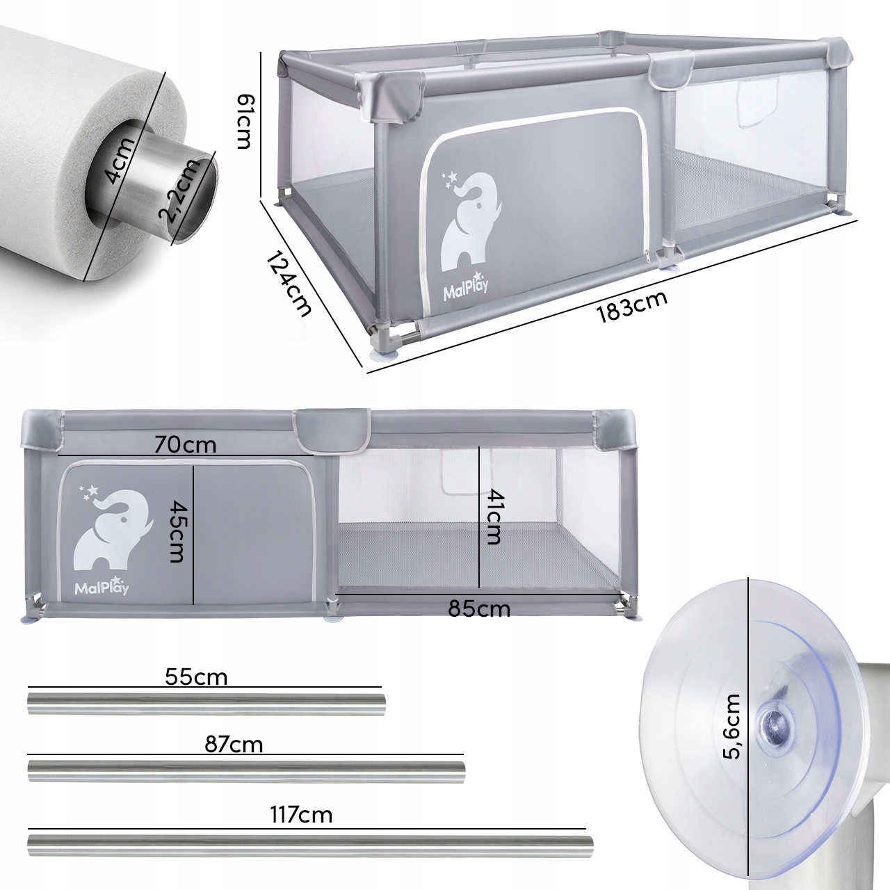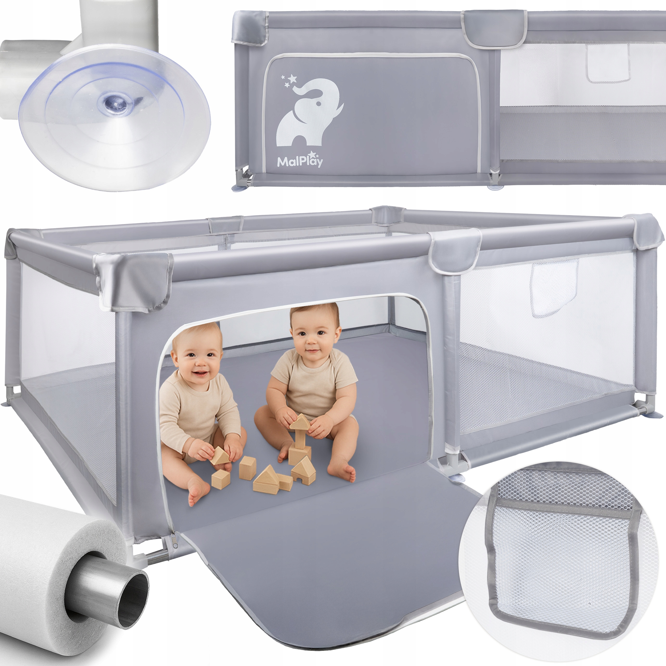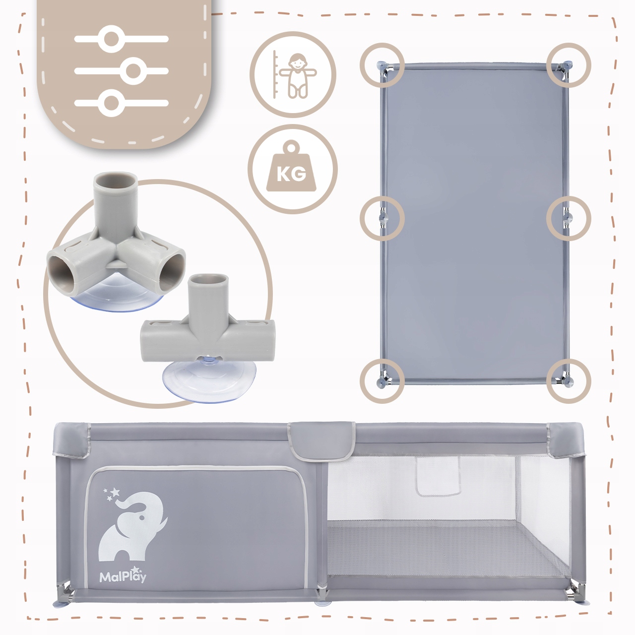 KIVO 120x180 cm to bezpieczne i funkcjonalne rozwiązanie stworzone z myślą o dzieciach od 6 do 36 miesięcy. Dzięki solidnej stalowej konstrukcji oraz przyssawkom w narożnikach, kojec pozostaje stabilny nawet przy intensywnej zabawie.