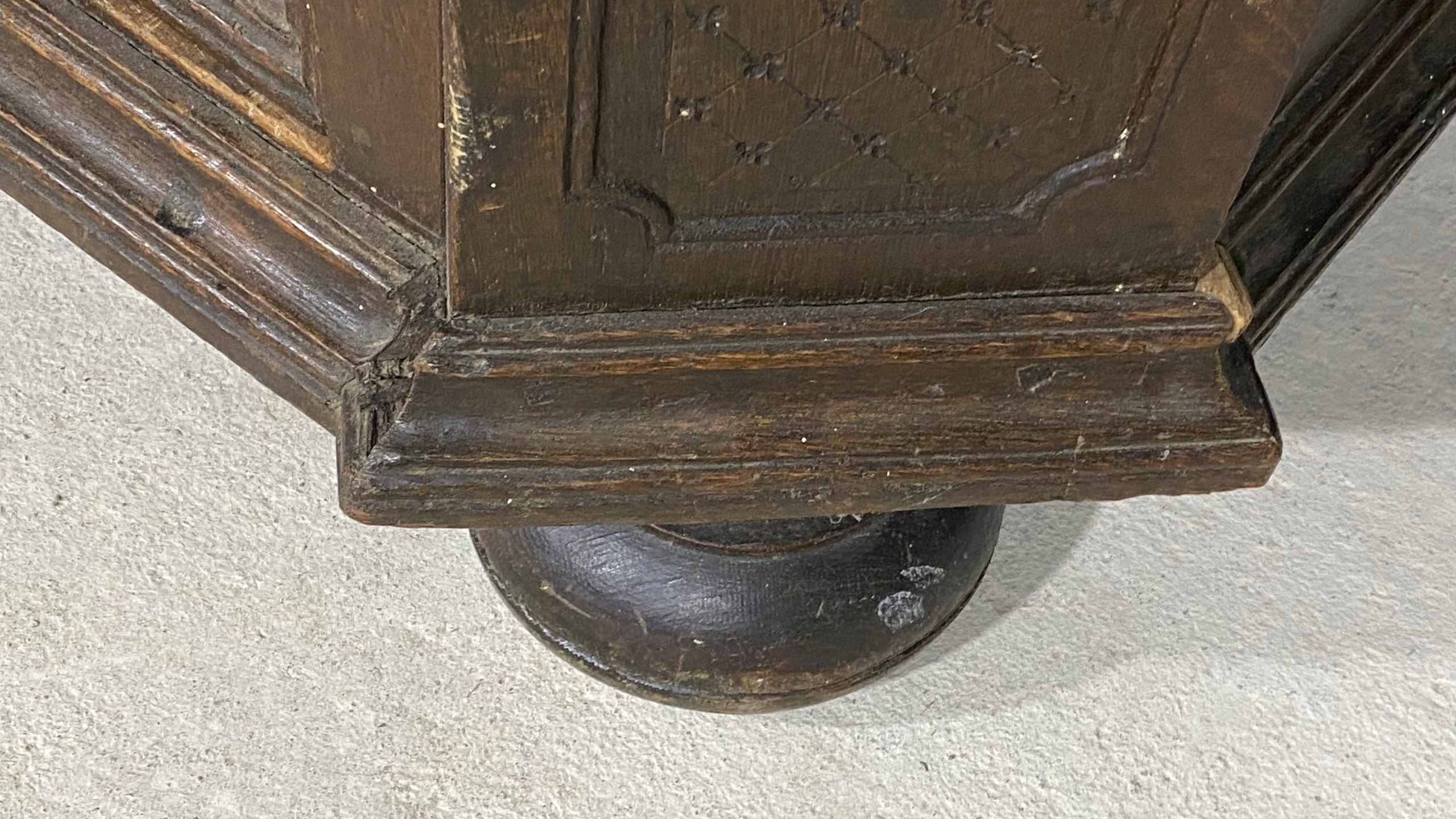 Mebel wykonano w całości z litego drewna, jest bardzo masywny, ciężki.