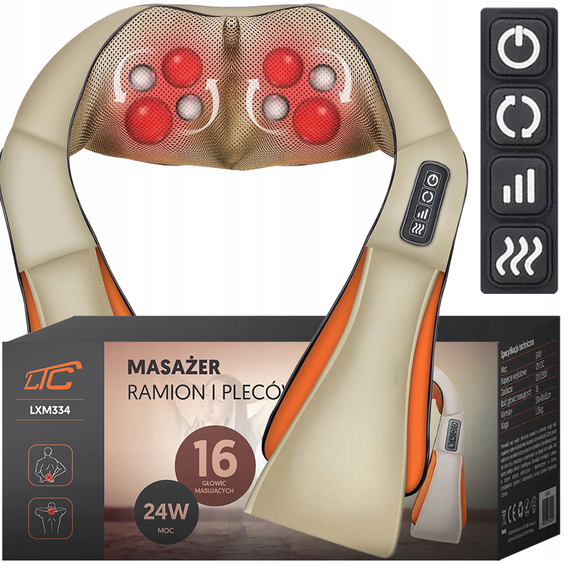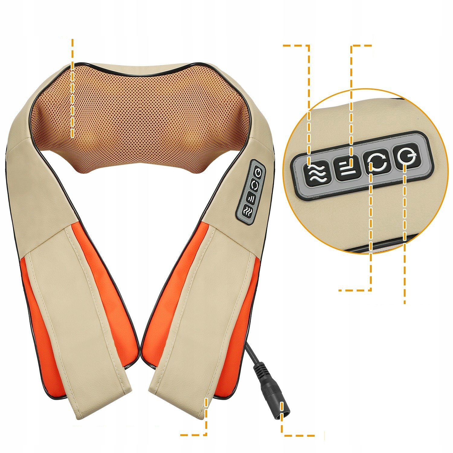 Masażer został zaprojektowany tak, aby obsługa była intuicyjna nawet podczas pierwszego użycia. Wyposażono go w czytelny panel z wygodnie rozmieszczonymi przyciskami, które umożliwiają szybkie dostosowanie intensywności, kierunku masażu oraz funkcji grzania. Dzięki temu użytkownik może łatwo dopasować pracę urządzenia do swoich potrzeb — od delikatnego masażu relaksacyjnego po mocniejsze, głębsze działanie na spięte mięśnie.