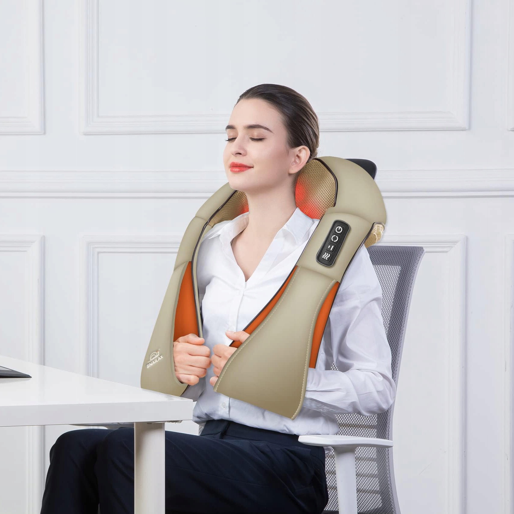 Mimo bardzo cichej pracy urządzenie zapewnia mocny i precyzyjny masaż, który skutecznie pomaga redukować napięcia mięśniowe i objawy stresu. Sprawdza się zarówno przy codziennym zmęczeniu, jak i przy bardziej uporczywych dolegliwościach związanych z przeciążeniem mięśni.