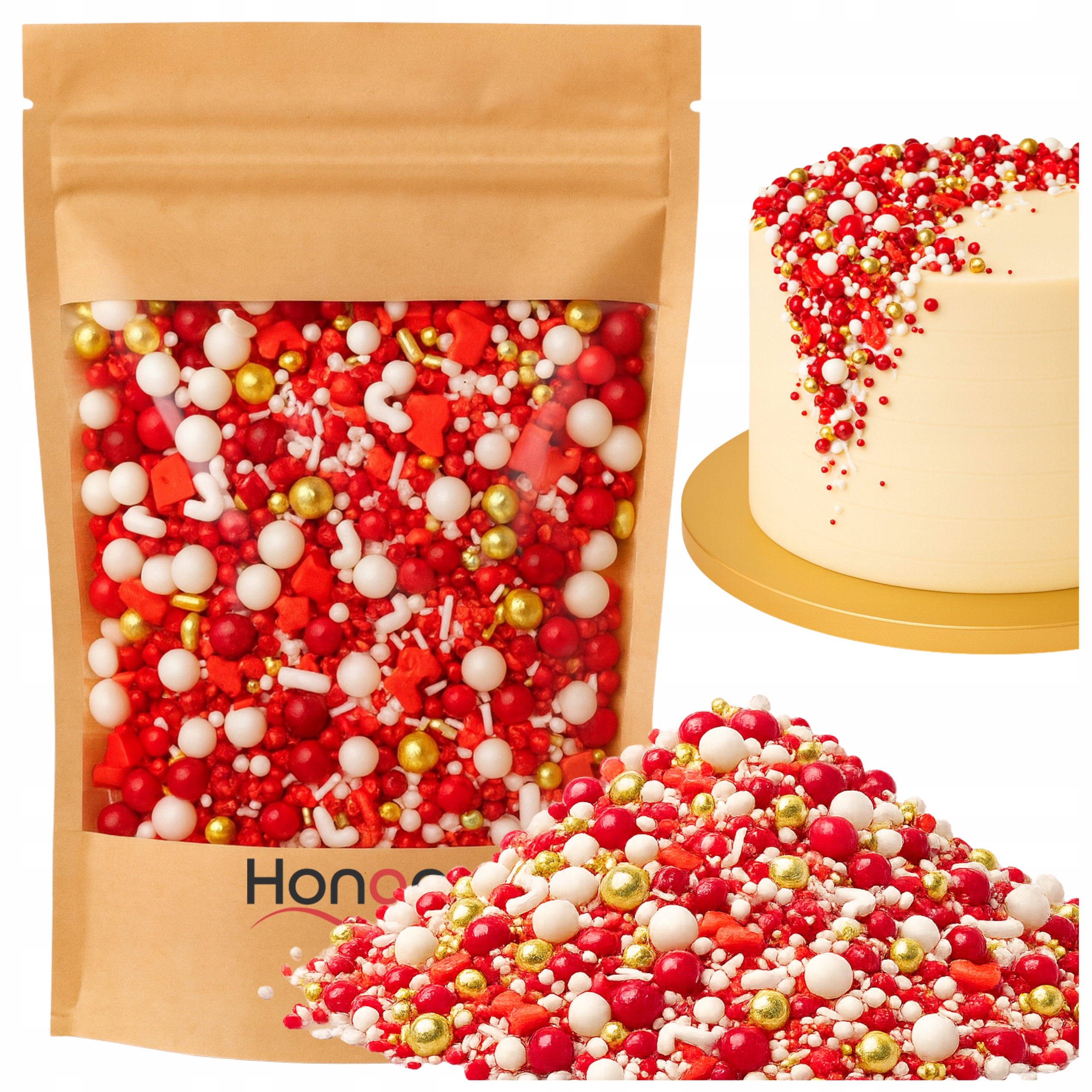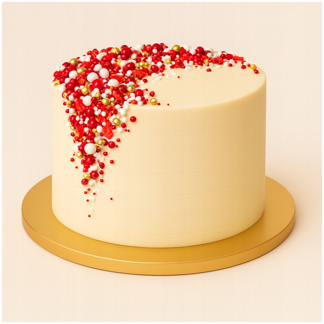 Ta efektowna posypka sprawi, że każde ciasto, pierniczek czy deser zyska wyjątkowo świąteczny charakter. Połączenie intensywnej czerwieni, eleganckiej bieli i połyskującego złota natychmiast przyciąga wzrok, dzięki czemu Twoje wypieki będą prezentować się jak z profesjonalnej cukierni.