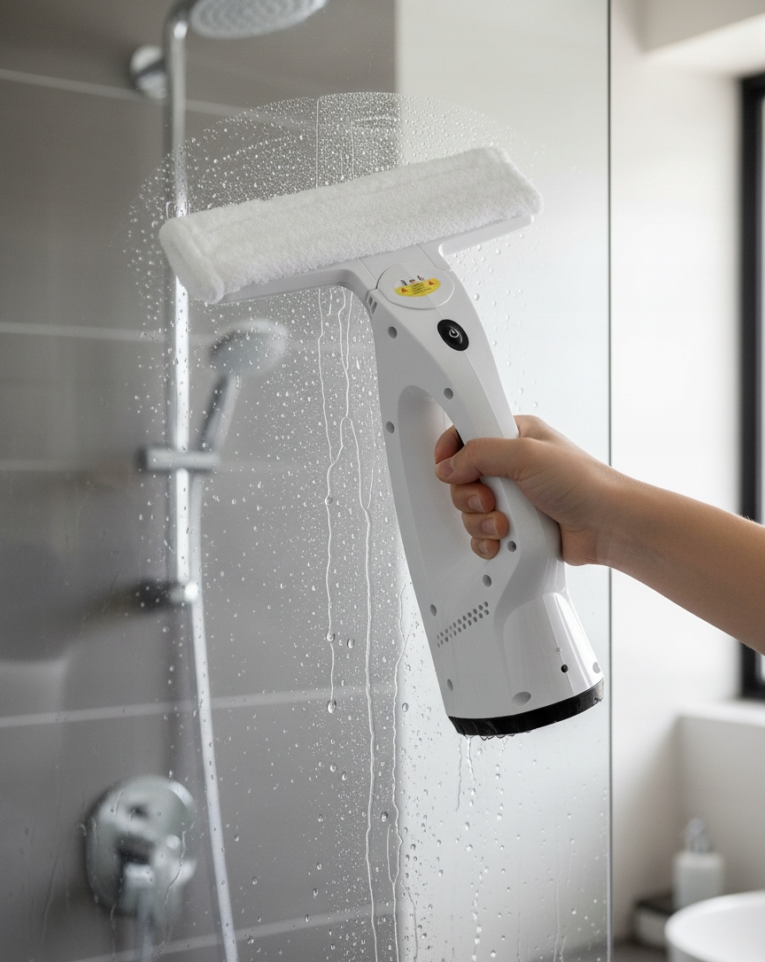 Urządzenie łączy funkcję spryskiwacza i ściągaczki, dzięki czemu skutecznie czyści szyby, lustra i inne gładkie powierzchnie - bez smug i zacieków.
