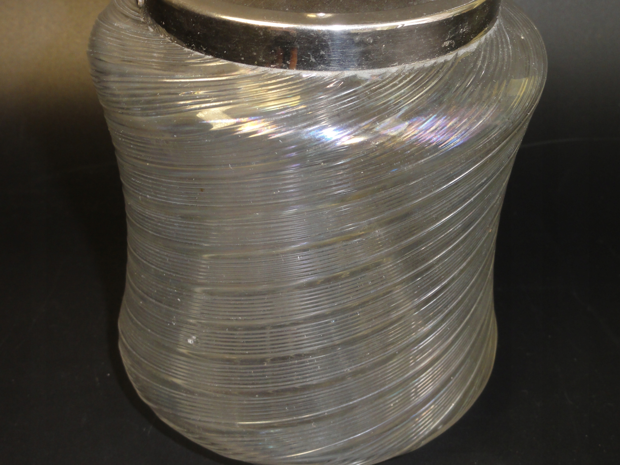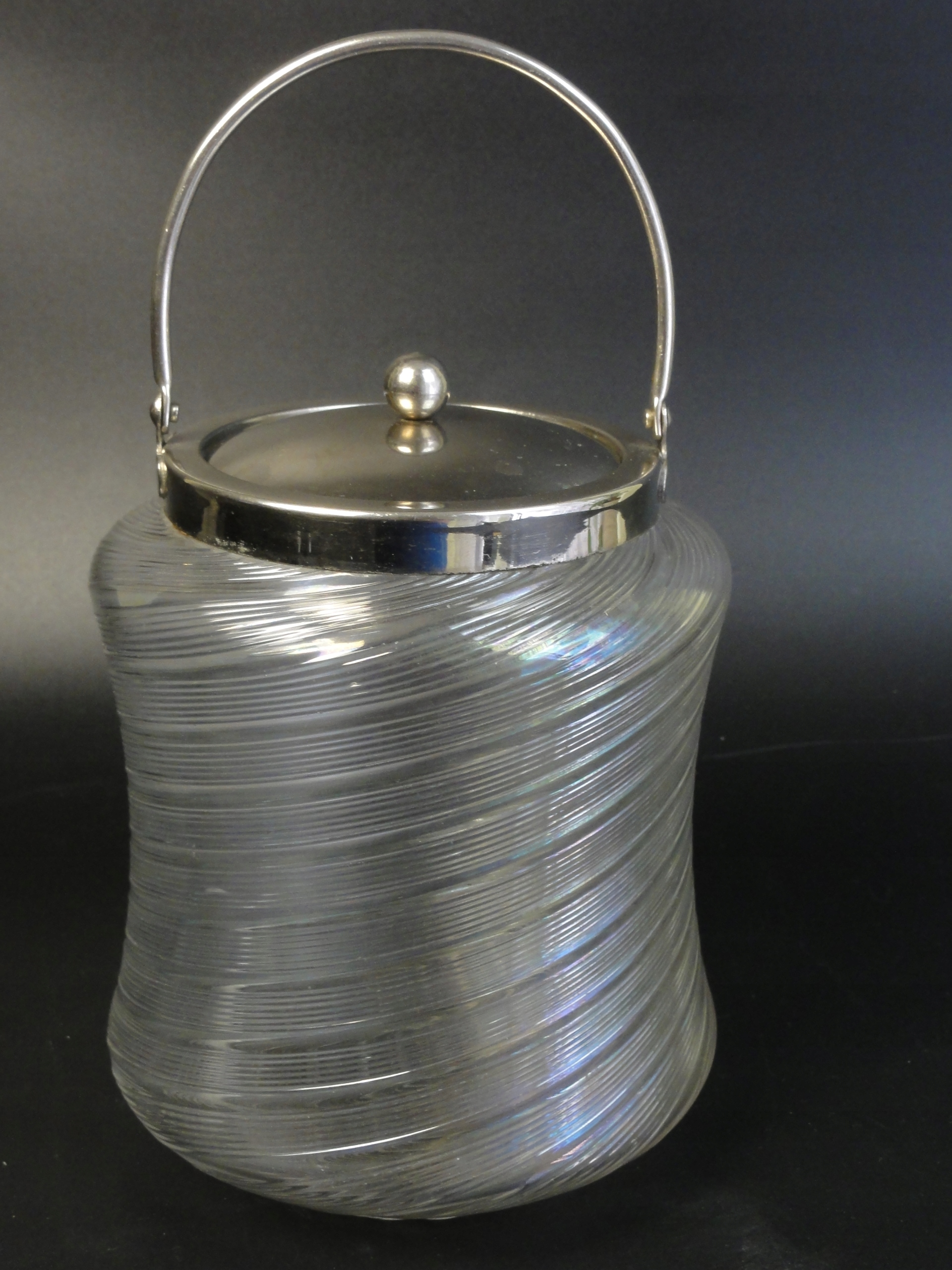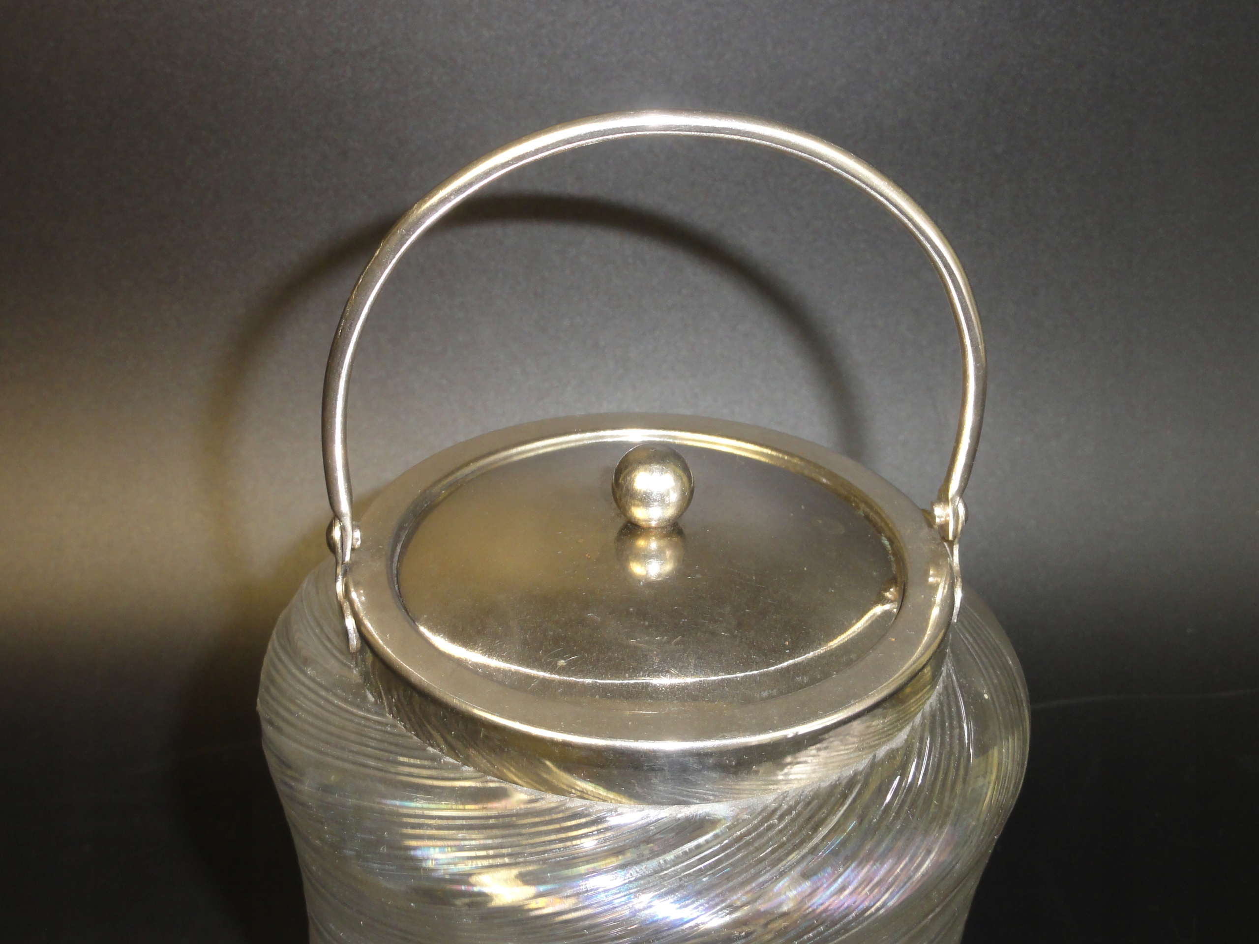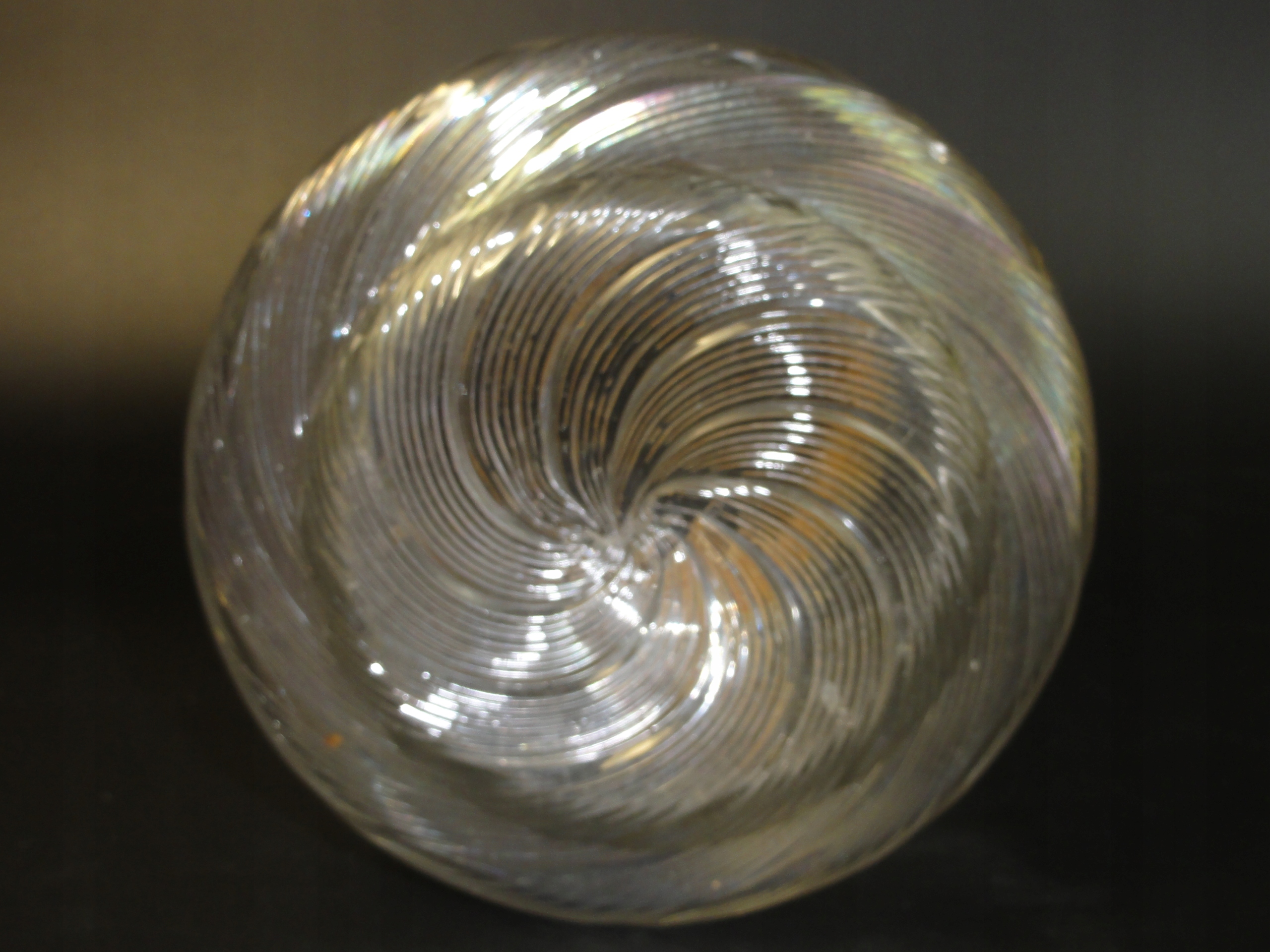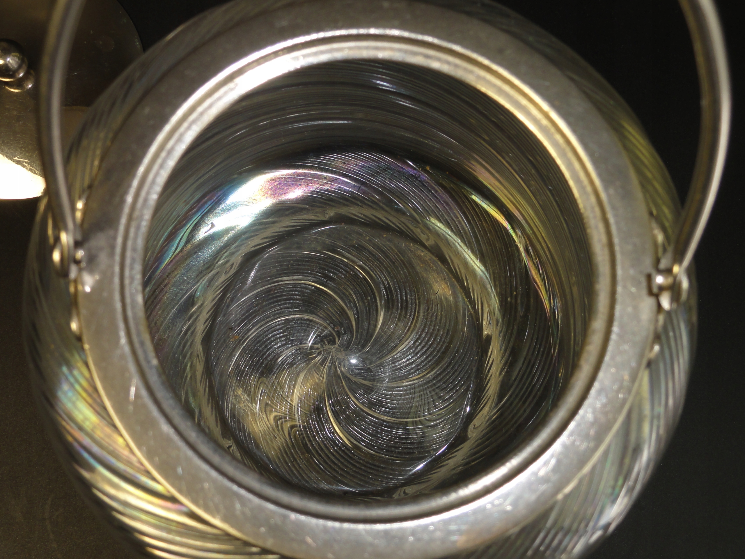 z spiralnie skręconego, opalizującego szkła, w mosiężnym, niklowanym okuciu,
