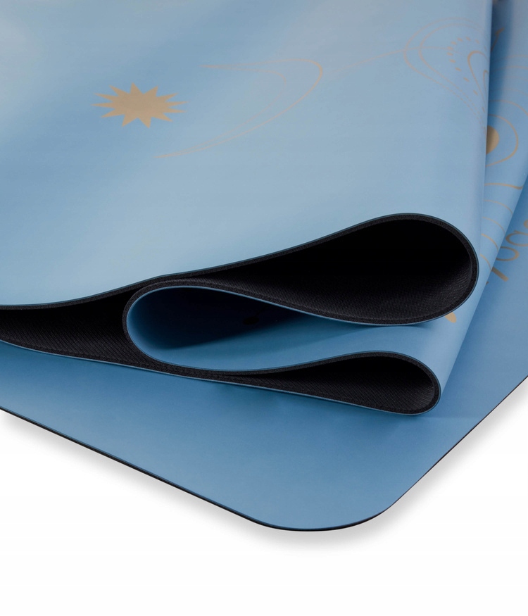 Kosmiczny print przedstawiający księżyc, gwiazdy i słońce pomaga zachować symetrię oraz łatwiej ustawiać dłonie i stopy. To piękny, funkcjonalny dodatek do praktyki w domu, studio lub na zewnątrz.