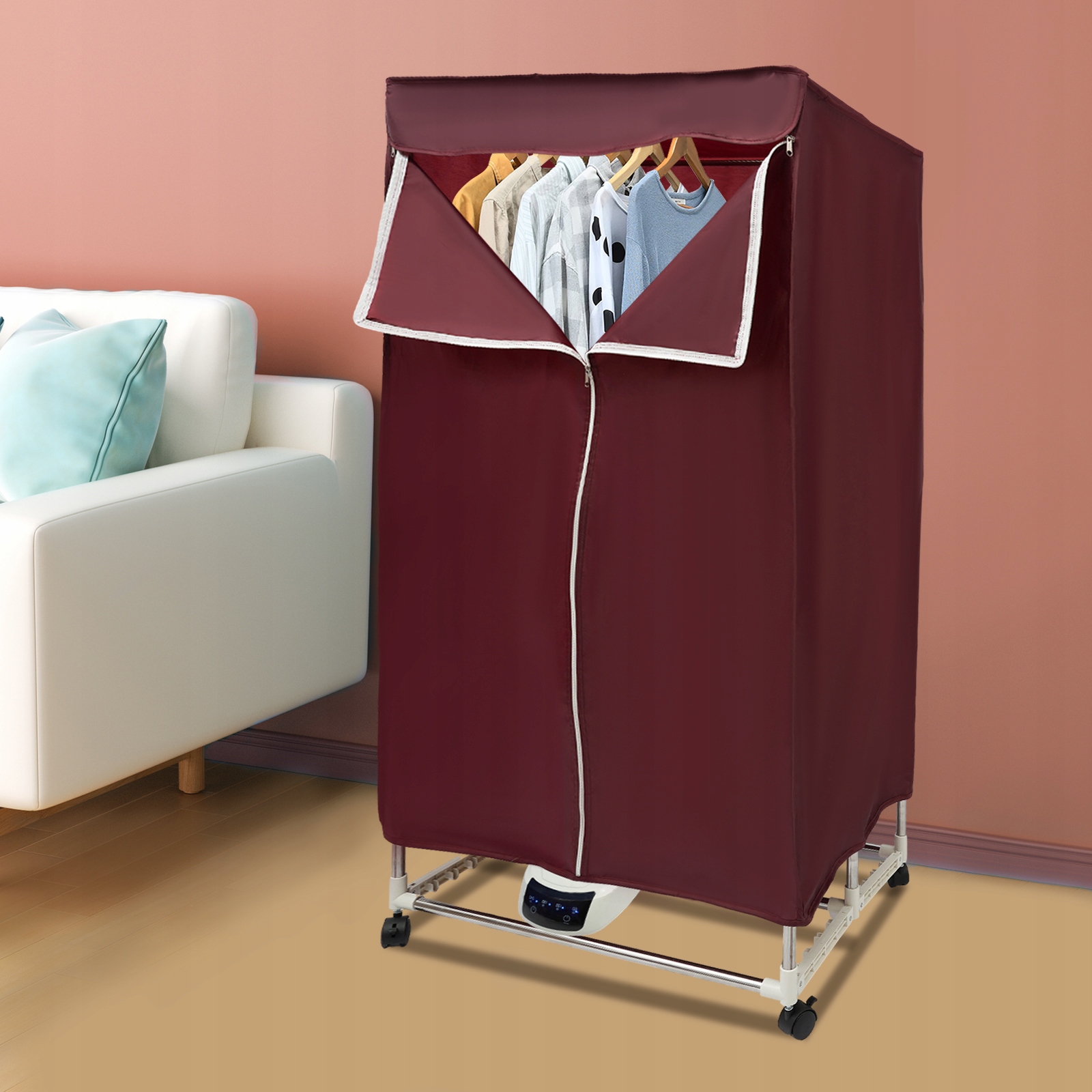 Przemyślany Design: Możesz ustawić czas suszenia (60/120/180/240min) zgodnie z różnymi ubraniami bez potrzeby przebywania cały czas. Uniwersalne kółka (dwa z nich posiadają hamulce) ułatwiają przesuwanie i mocowanie produktu.