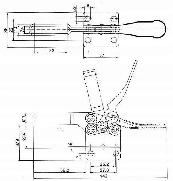 Uniwersalny docisk montażowy 201B zapewnia siłę docisku 90 kg i zasięg roboczy 50 mm.