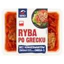 ➡️Składniki: sos grecki 65% [woda, marchew, cebula, cukier, koncentrat pomidorowy, seler, olej rzepakowy, ocet spirytusowy, sól, skrobia modyfikowana, przyprawy, ekstrakt liścia laurowego, ekstrakt ziela angielskiego]. kawałki filetów ze srebrzyka smażone 35% [srebrzyk (Argentina silus), mąka pszenna, olej rzepakowy]