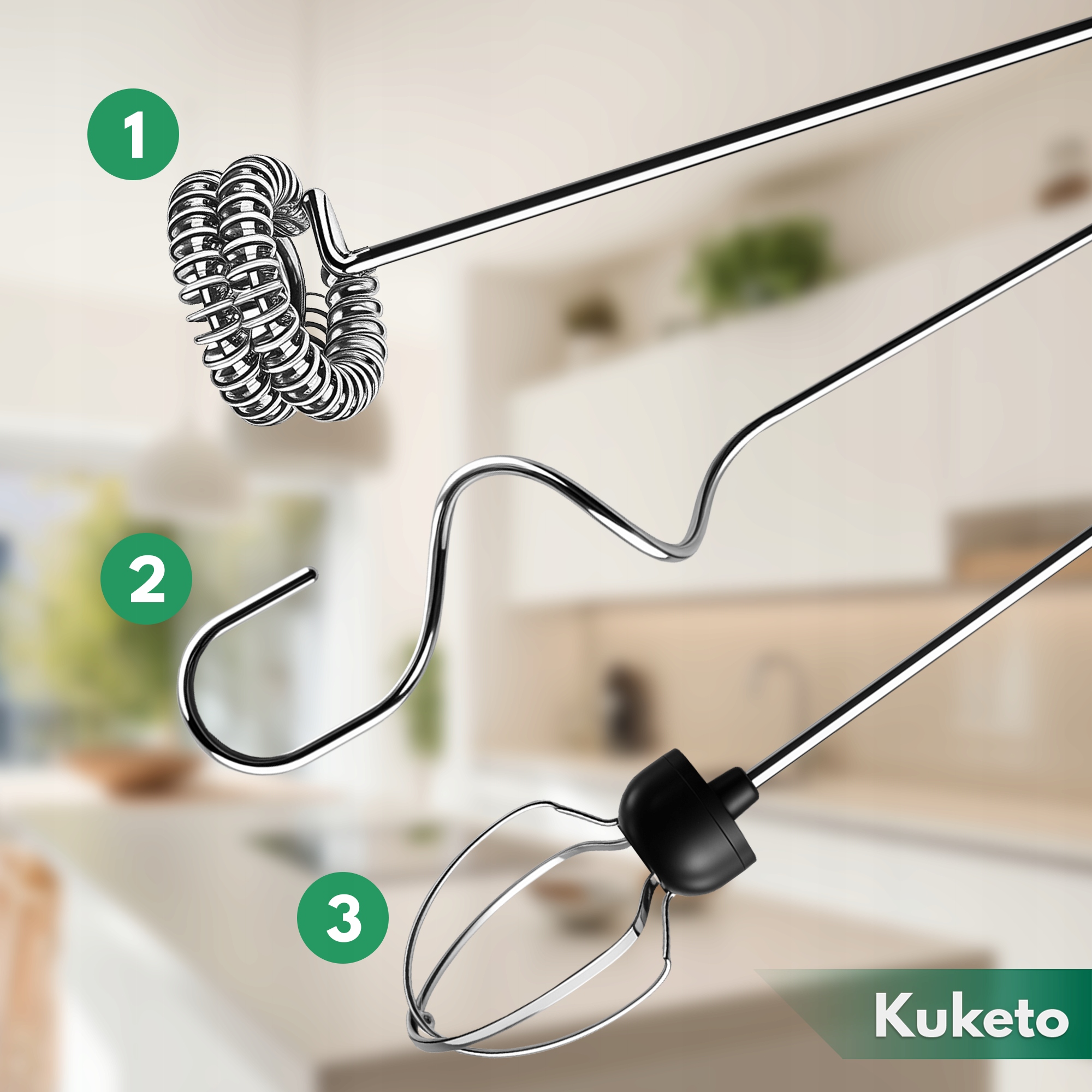 ➡️ 3 końcówki: trzepaczka sprężynowa, balonowa, hakowa