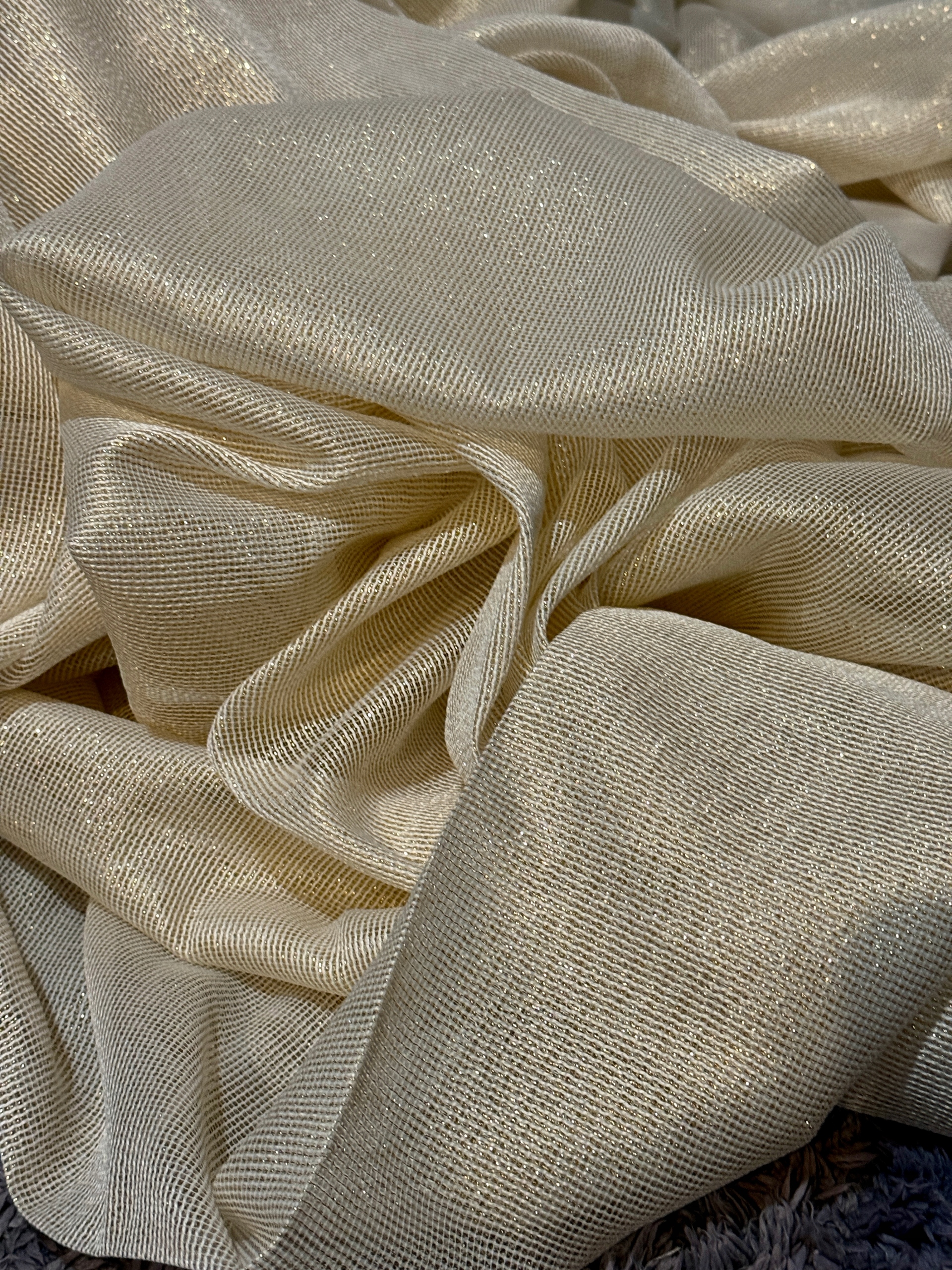 ❇️RODZAJ TKANINY : LEN SYNTETYCZNY BŁYSZCZĄCY Z ZŁOTĄ NITKĄ SZRON