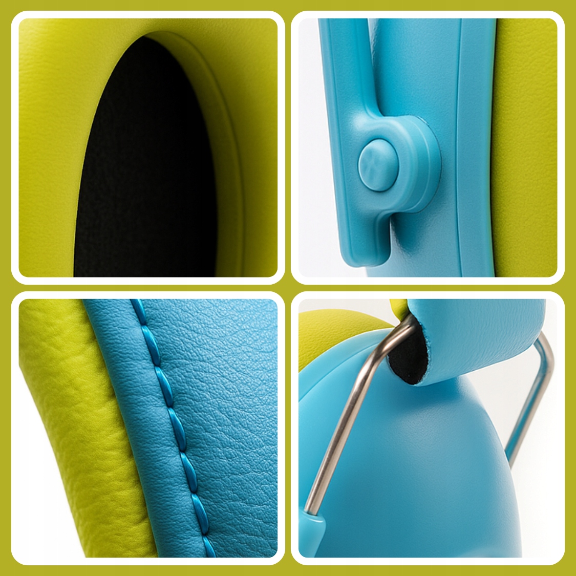 ➡️ PRZYJAZNE KOLORY – połączenie pastelowego niebieskiego i żółtego tworzy atrakcyjną stylistykę, która zachęca dziecko do noszenia słuchawek w różnych sytuacjach.