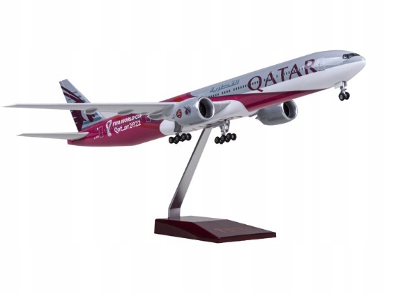 Model prezentuje malowanie jednej z najbardziej cenionych i luksusowych linii lotniczych świata – Qatar Airways. Charakterystyczna kolorystyka, dopracowane detale oraz elegancka sylwetka Boeinga 777 nadają całości profesjonalnego i ekskluzywnego wyglądu.