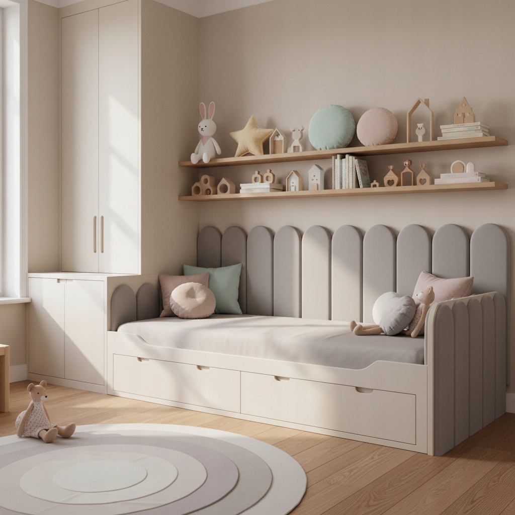 Stwórz wyjątkową aranżację ściany dzięki panelom tapicerowanym "Płotek". To nowoczesne i eleganckie panele, które dzięki miękkiej formie i zaokrąglonej górze nadają wnętrzu przytulnego, designerskiego charakteru. Sprawdzą się w sypialni, salonie, pokoju dziecka, przedpokoju, a także w komercyjnych przestrzeniach, takich jak biura czy garderoby.