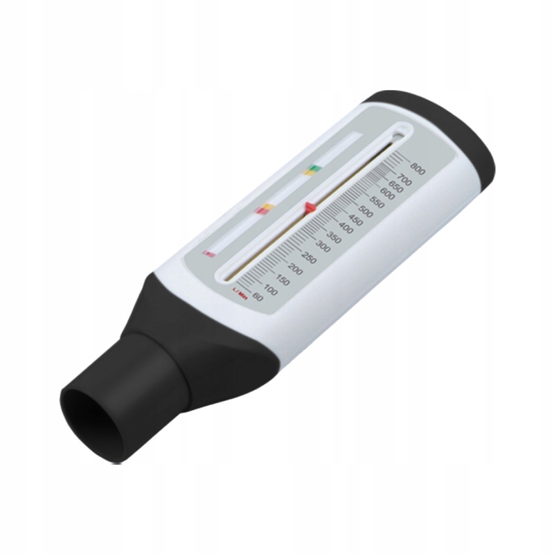 Aby uzyskać pomiar należy dmuchnąć w końcówkę urządzenia. Wskaźnik wzrośnie do wartości przepływu szczytowego, a pomiar przypływu szczytowego zostanie pokazany w jednej ze stref.