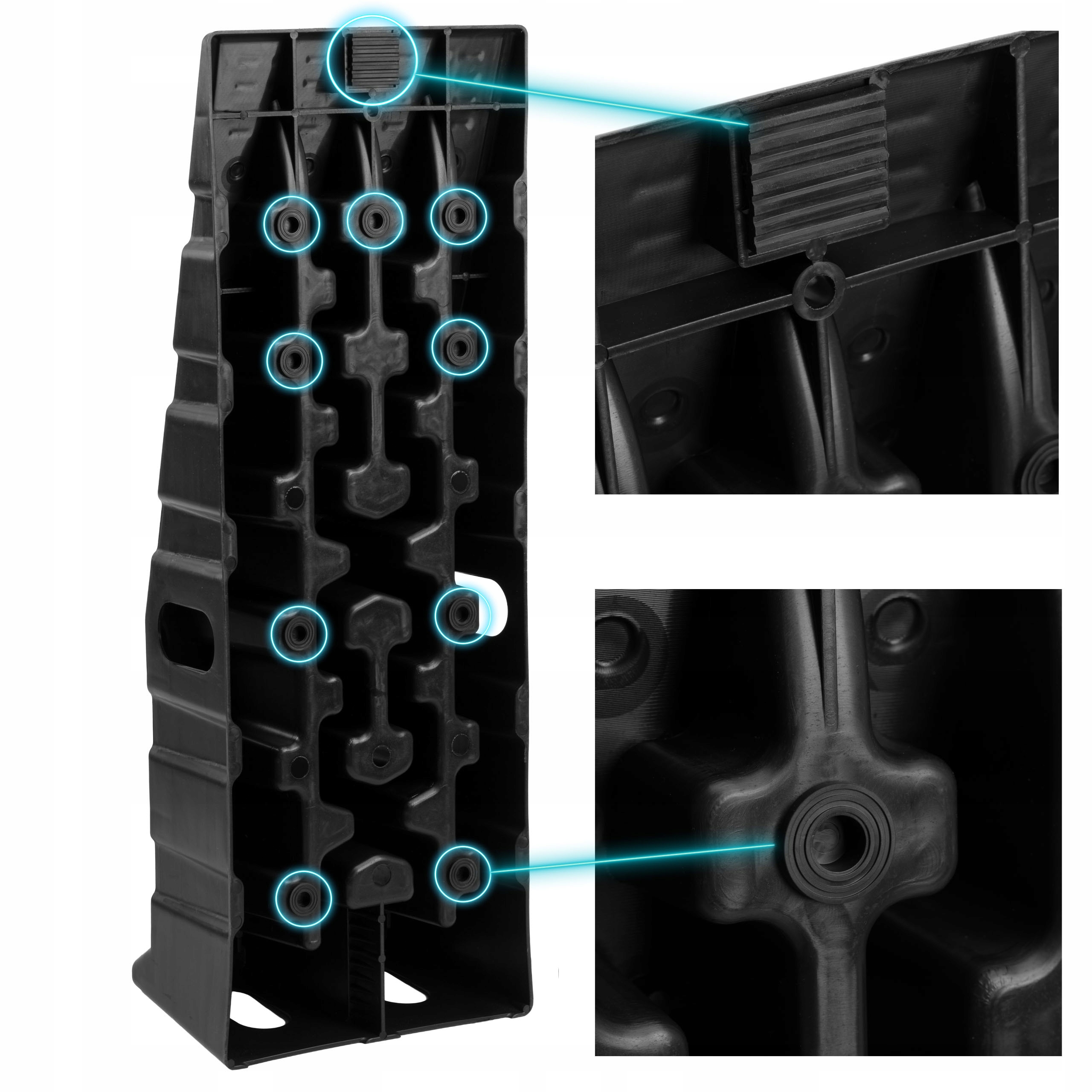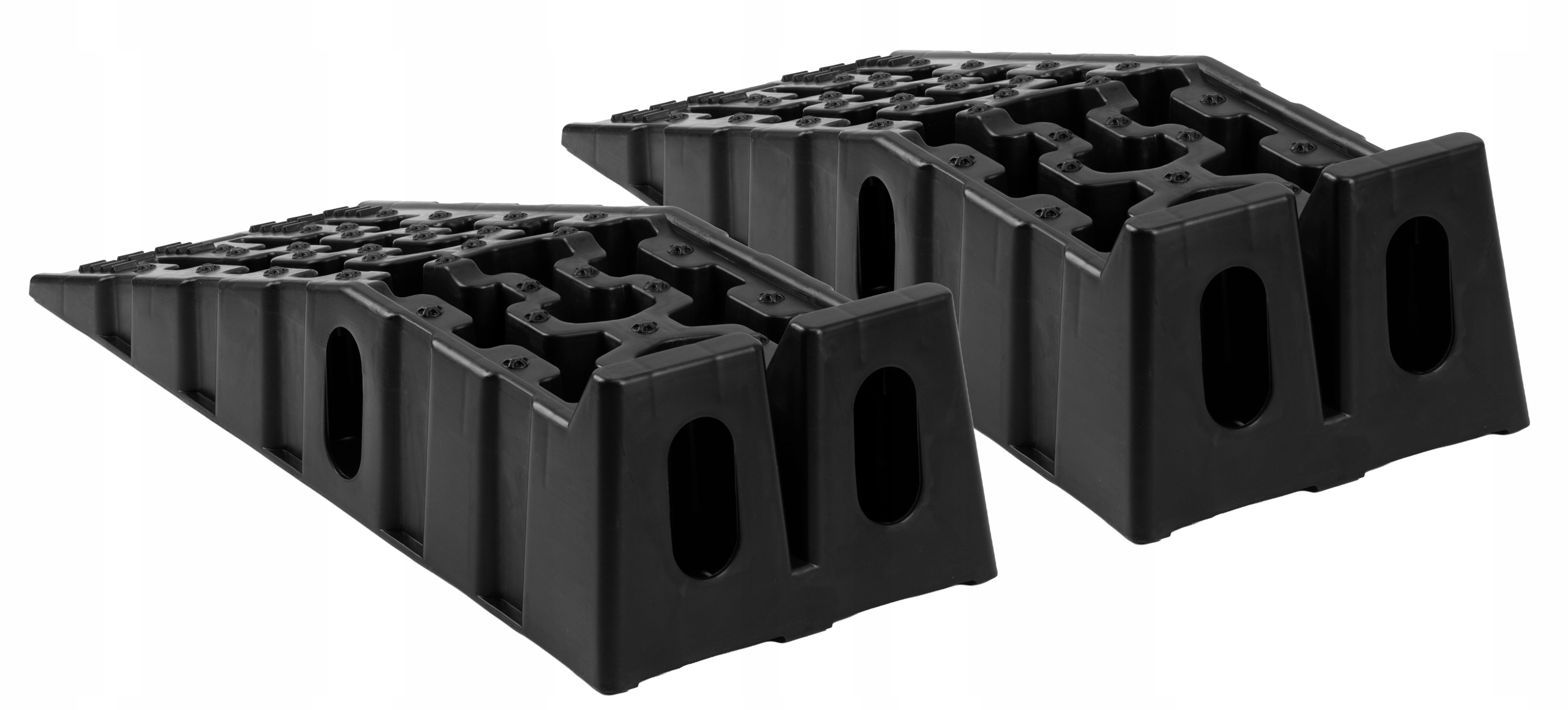 Na spodzie każdej rampy jest aż 10 antypoślizgowych gum, dzięki którym rampy stoją stabilnie podczas najeżdżania.