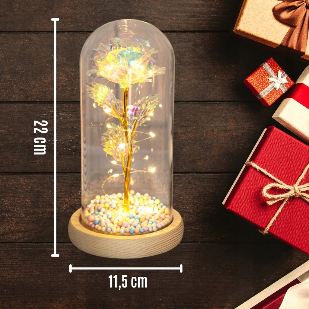 Wieczna róża w szkle to wyjątkowa ozdoba, która łączy w sobie luksusowy wygląd, romantyczny klimat i trwały charakter. Delikatne podświetlenie LED podkreśla piękno kwiatów, tworząc atmosferę ciepła i elegancji. To idealny prezent na każdą ważną okazję — od rocznic po wyjątkowe momenty bez okazji.