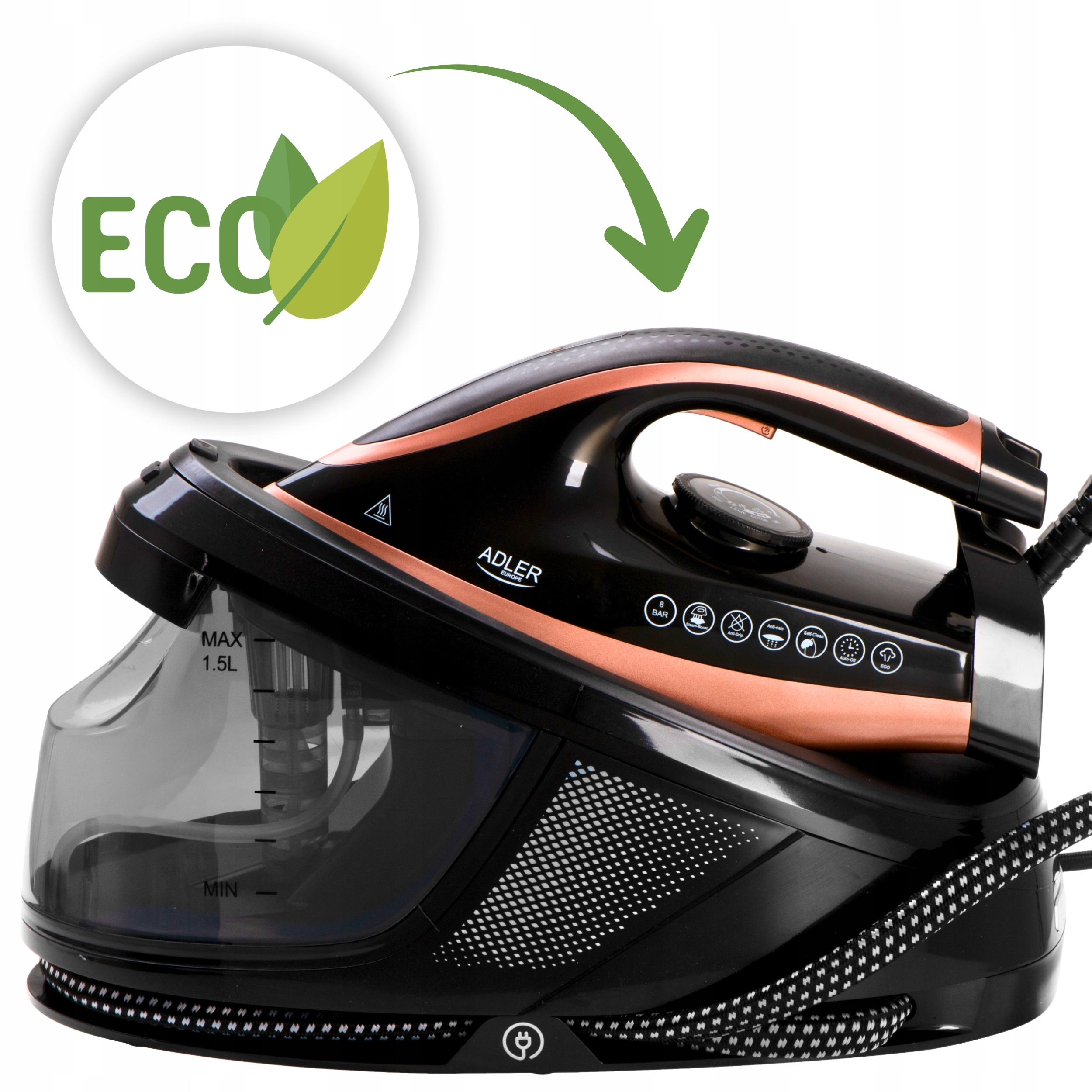 Prasuj wydajnie i ekologicznie. Tryb ECO pozwala zmniejszyć zużycie energii bez spadku skuteczności.