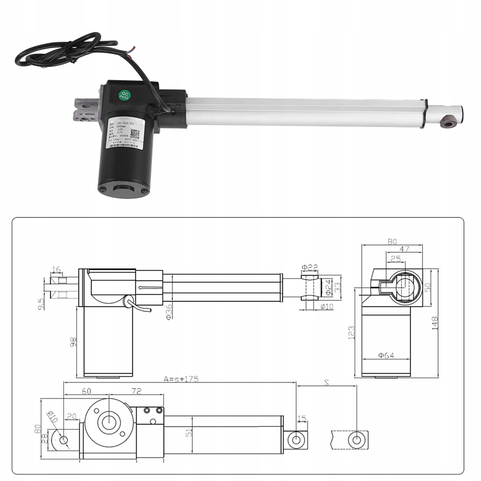 Maksymalne pchanie/wyciąganie wynosi do 6000N/4000N, a długość skoku to 300mm.