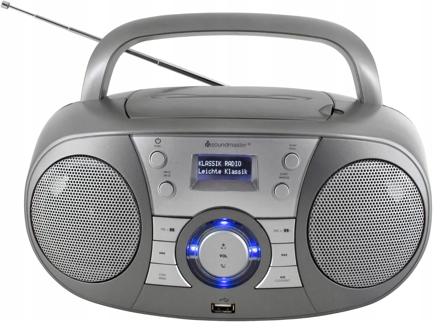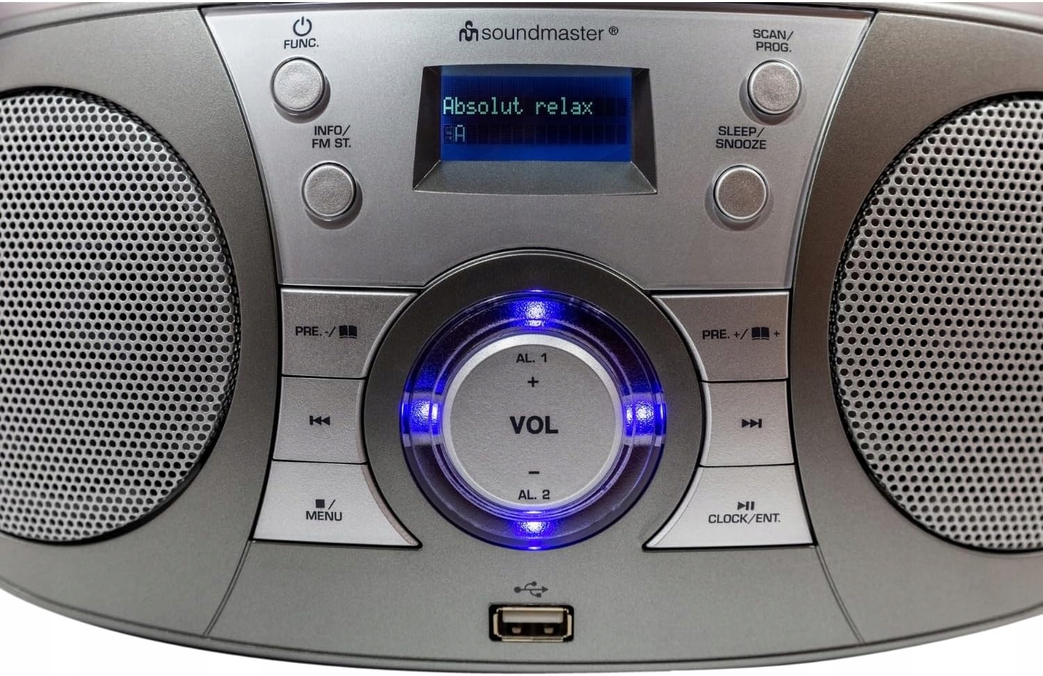 Napęd CD w górnej części obudowy odtwarza wszystkie standardowe typy płyt CD, czy to CD, CD-R, CD-RW czy CD-MP3. Ponadto dysk posiada takie funkcjonalności jak funkcja audiobook (funkcja wznawiania), funkcja powtarzania czy odtwarzanie losowe. Z przodu obudowy znajduje się również port USB do odtwarzania plików MP3.