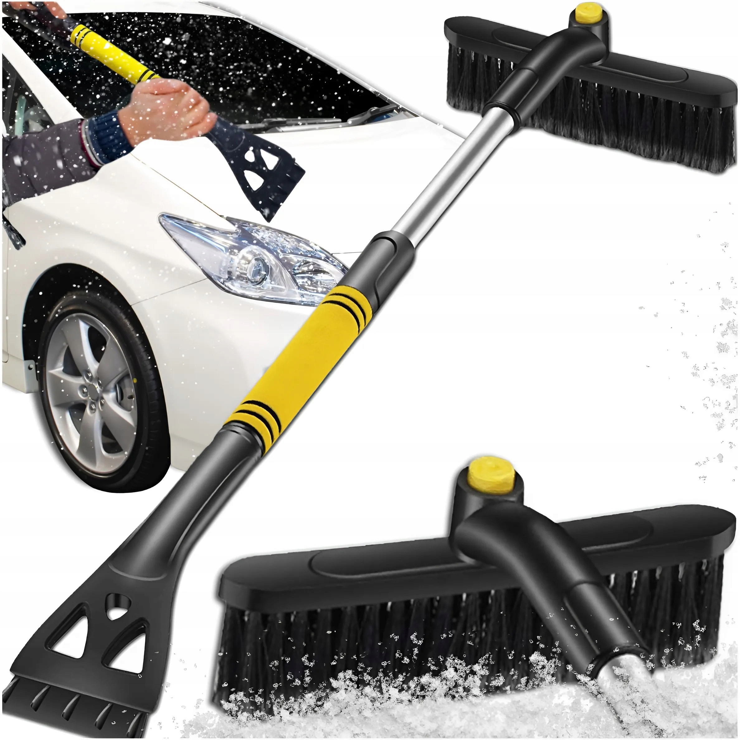 ➡️ DWUFUNKCYJNOŚĆ 2W1 – łączy szczotkę do śniegu i skrobaczkę do lodu w jednym narzędziu. Pozwala szybko i skutecznie oczyścić samochód z każdej strony.