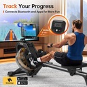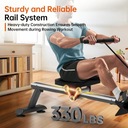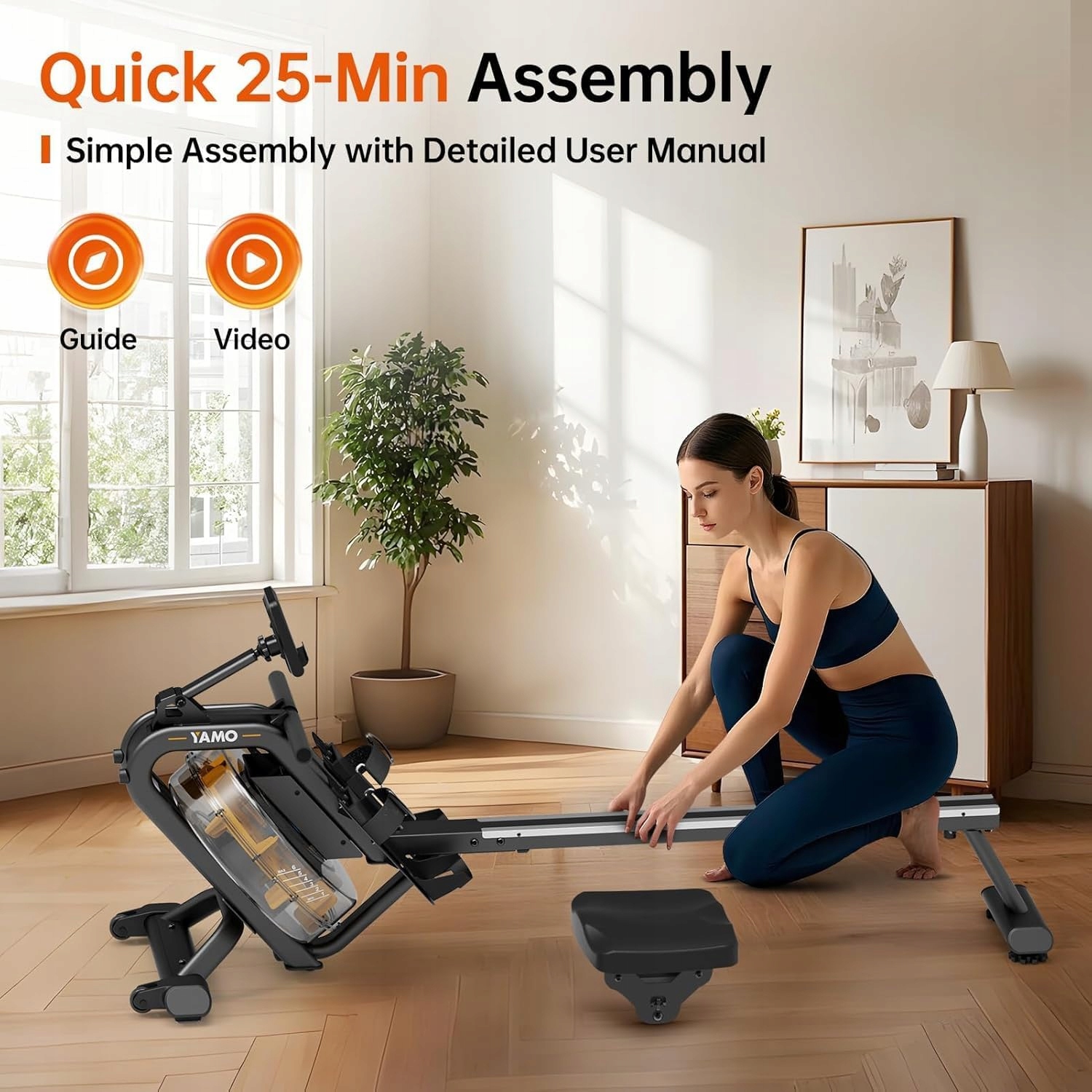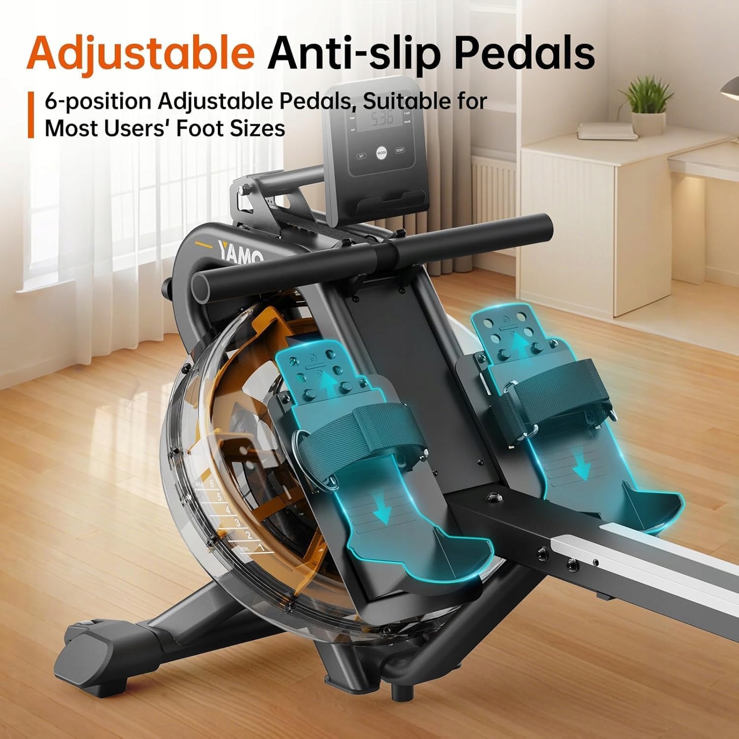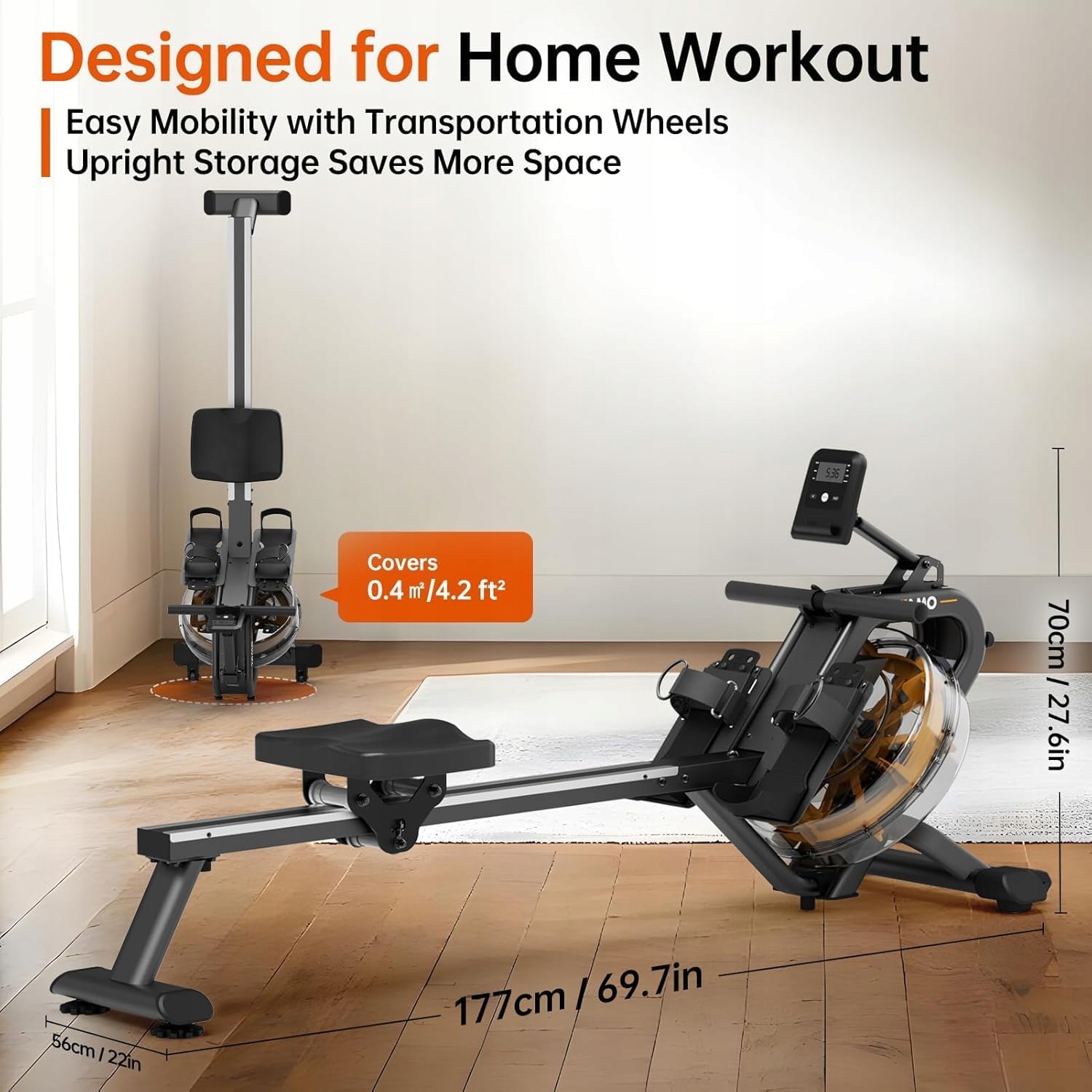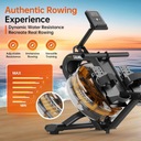 Wydajny zbiornik na wodę o pojemności 16 litrów – wytrzymały zbiornik o jakości lotniczej z 6 poziomami oporu. Od ćwiczeń rozgrzewających po intensywne treningi cardio i siłowe.REALISTYCZNE DOŚWIADCZENIE WESŁANIA – 12-łopatkowa konstrukcja wykonana ze stali nierdzewnej i poliwęglanu wytwarza realistyczny dźwięk przepływającej wody i zwiększa opór, zapewniając większą siłę mięśni.SOLIDNA I WYTRZYMAŁA KONSTRUKCJA – wytrzymała rama stalowa o grubości 2,0 mm, nośność 350 funtów. Szyna ślizgowa o długości 47 cali dla osób o wzroście od 125 do 190 cm. Niezwykle cicha i płynna praca.Inteligentny wyświetlacz LCD i Bluetooth – obracany o 360° wyświetlacz z funkcją pomiaru czasu, dystansu, kalorii i skanowania. Aplikacja Kinomap przez Bluetooth zapewnia wirtualne wrażenia z wiosłowania i analizę treningu.Łatwy montaż i przechowywanie – w 80% wstępnie zmontowany, montaż zajmuje 20–30 minut. Dwa kółka transportowe zapewniają elastyczne przemieszczanie i oszczędność miejsca podczas przechowywania.