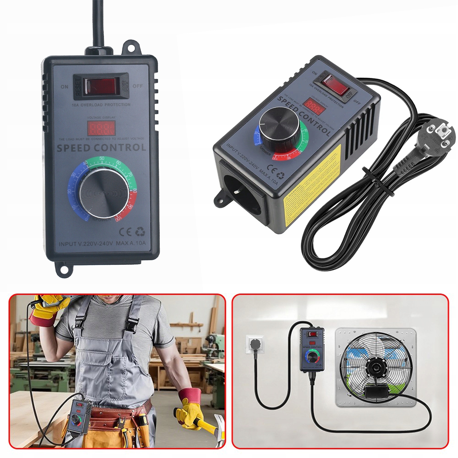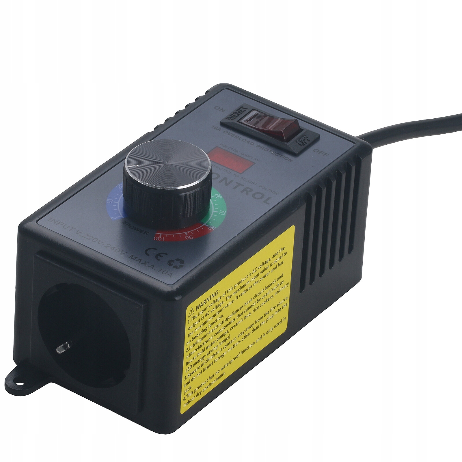 ➡️【Specyfikacja produktu】Wtyczka EU. Napięcie wejściowe: AC 220 V, napięcie wyjściowe: AC 0–220 V z płynną regulacją (woltomierz nie będzie działał, jeśli napięcie spadnie poniżej 10 V). Zakres regulacji napięcia: AC 0–220 V. Prąd znamionowy: 10 A, prąd maksymalny: 18 A. Moc szczytowa regulatora prędkości: 4000 W. Wymiary: 122 x 65 x 56 mm.