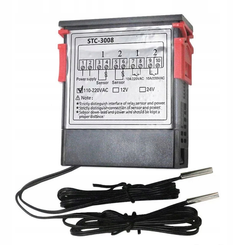 Wyposażony w dwa wodoodporne czujniki NTC10K (1-metrowy kabel), może jednocześnie łączyć się z dwoma urządzeniami (takimi jak agregat chłodniczy + grzałka lub akwarium + urządzenie chłodzące) i sterować nimi, eliminując potrzebę stosowania dodatkowego termostatu;