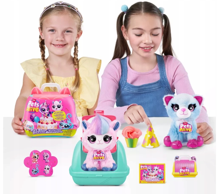 Czas na urodzinową frajdę z Pets Alive Pet Shop Surprise Birthday Party od ZURU! W każdym słodkim zestawie znajduje się elektroniczny pluszak, który dzięki funkcji „Speak & Repeat” potrafi powtarzać Twoje słowa, dodając zabawie humoru i energii! Otwórz transporter dla zwierzaka i odkryj aż 10 ukrytych niespodzianek. W środku czekają m.in. imprezowa czapeczka, mini babeczki, naklejki, slime oraz certyfikat adopcyjny, który pozwoli Ci oficjalnie powitać nowego futrzastego przyjaciela w rodzinie.