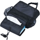 Wyposażony w 3 praktyczne kieszonki wykonane z siatki do przechwywania napoji, a dodatkowo na samym dole posiada kieszeń na chusteczki higieniczne.
