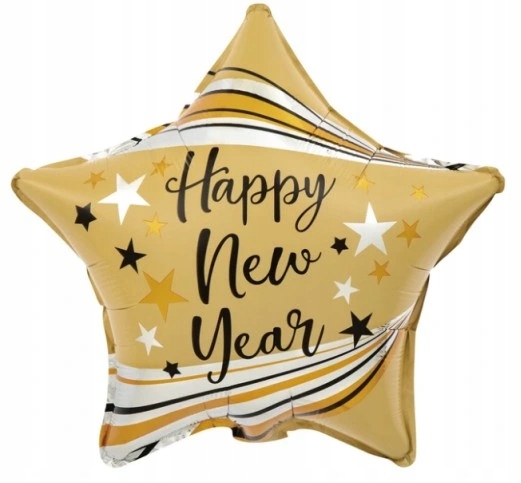 Klasyczne czarne balony z eleganckim złotym napisem "Happy New Year". Doskonałe do stworzenia nowoczesnego i wyrafinowanego klimatu na Sylwestra. Świetnie komponują się z innymi dekoracjami, tworząc niezapomnianą atmosferę!