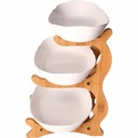 Piętrowa patera wykonana z drewna bambusowego i eleganckich misek w odcieniach morskiej zieleni dodaje elegancji i stylu do każdej aranżacji stołu. Bambusowa konstrukcja wprowadza naturalny, ciepły akcent do wnętrza, podczas gdy eleganckie miski dodają świeżości i nowoczesności.