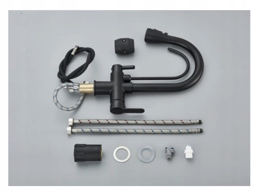 Nasza bateria posiada dwa odrębne obwody, z których jeden odpowiada za doprowadzenie wody ciepłej i zimnej, a drugi umożliwia podłączenie do wody filtrowanej. Dzięki temu innowacyjnemu rozwiązaniu, bateria trójdrożna eliminuje potrzebę montażu dodatkowego kranu do wody filtrowanej.