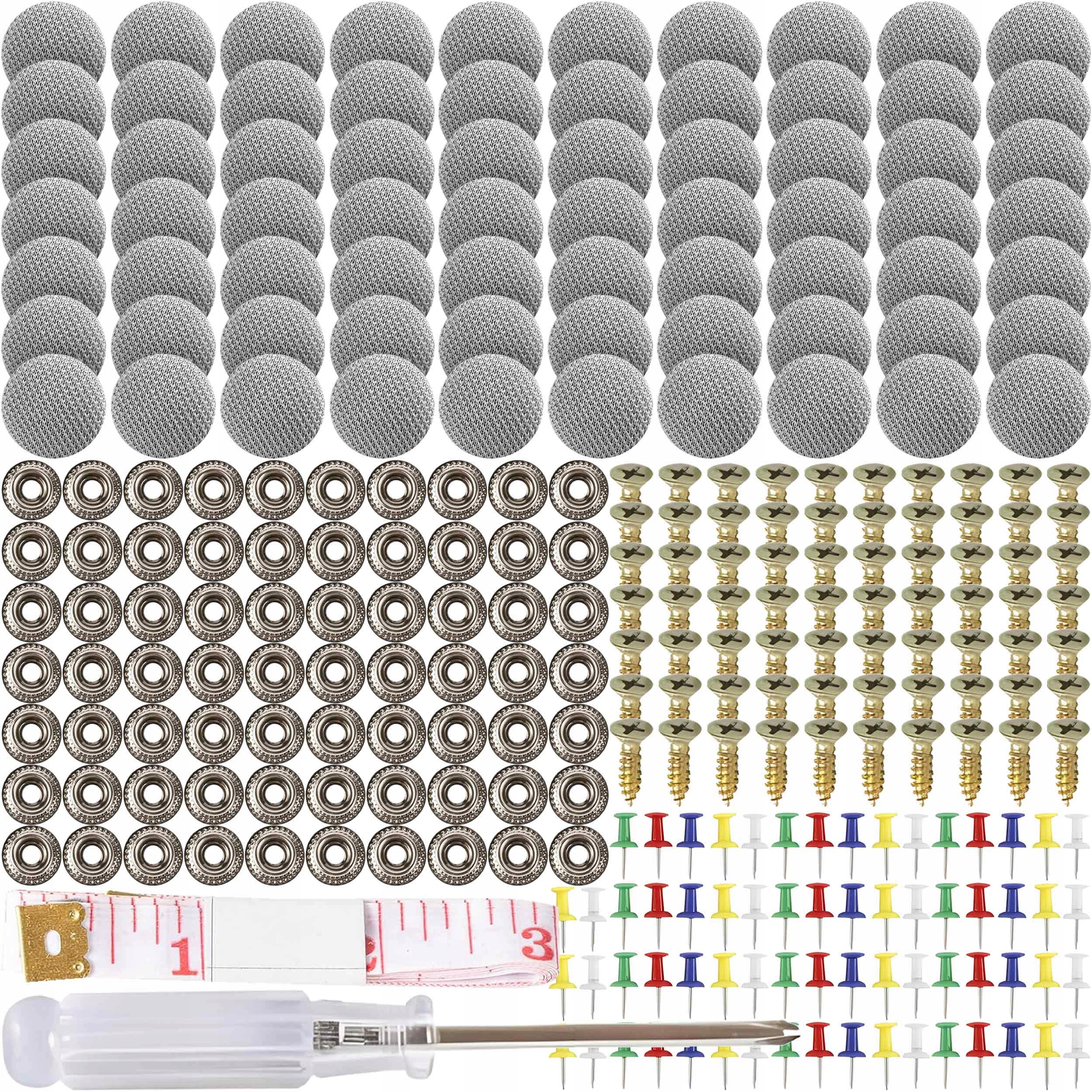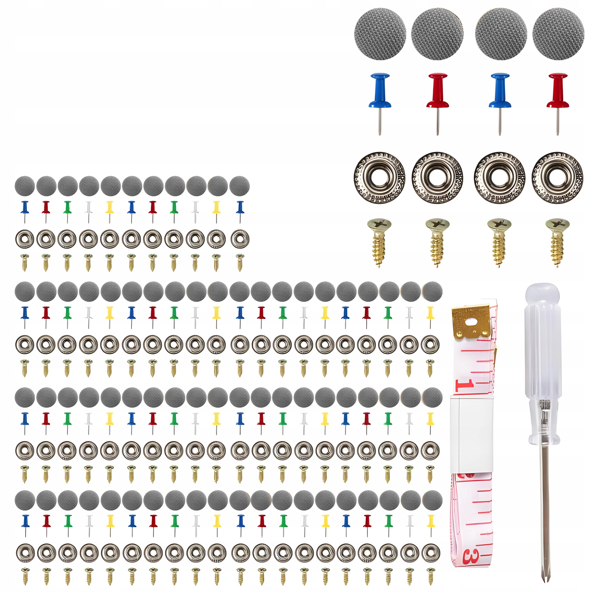 Nasz zestaw zawiera wszystko, czego potrzebujesz: nity, pinezki, śrubokręt i miarę.