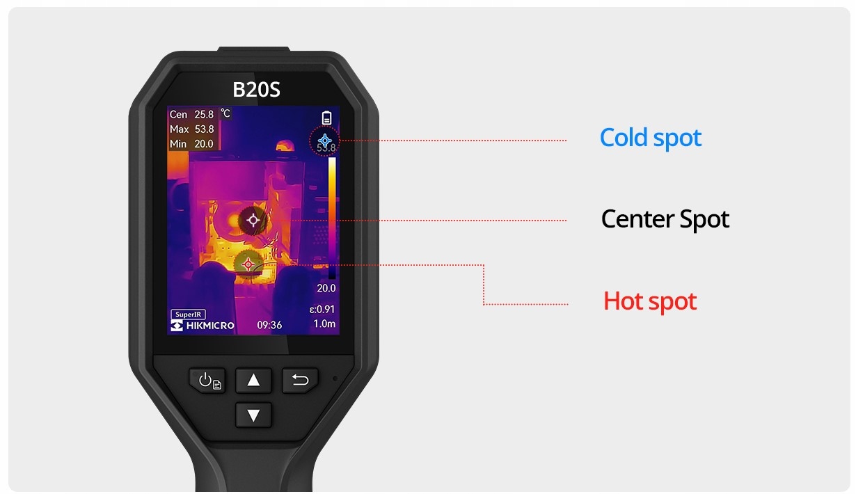 B21LS obsługuje pełnoekranowe zdjęcia radiometryczne i automatycznie śledzi maksymalne, minimalne oraz środkowe punkty temperatury, umożliwiając szybkie wykrywanie anomalii. Zakres pomiaru wynosi od -20°C do 550°C z dokładnością ±2°C lub ±2% odczytu.