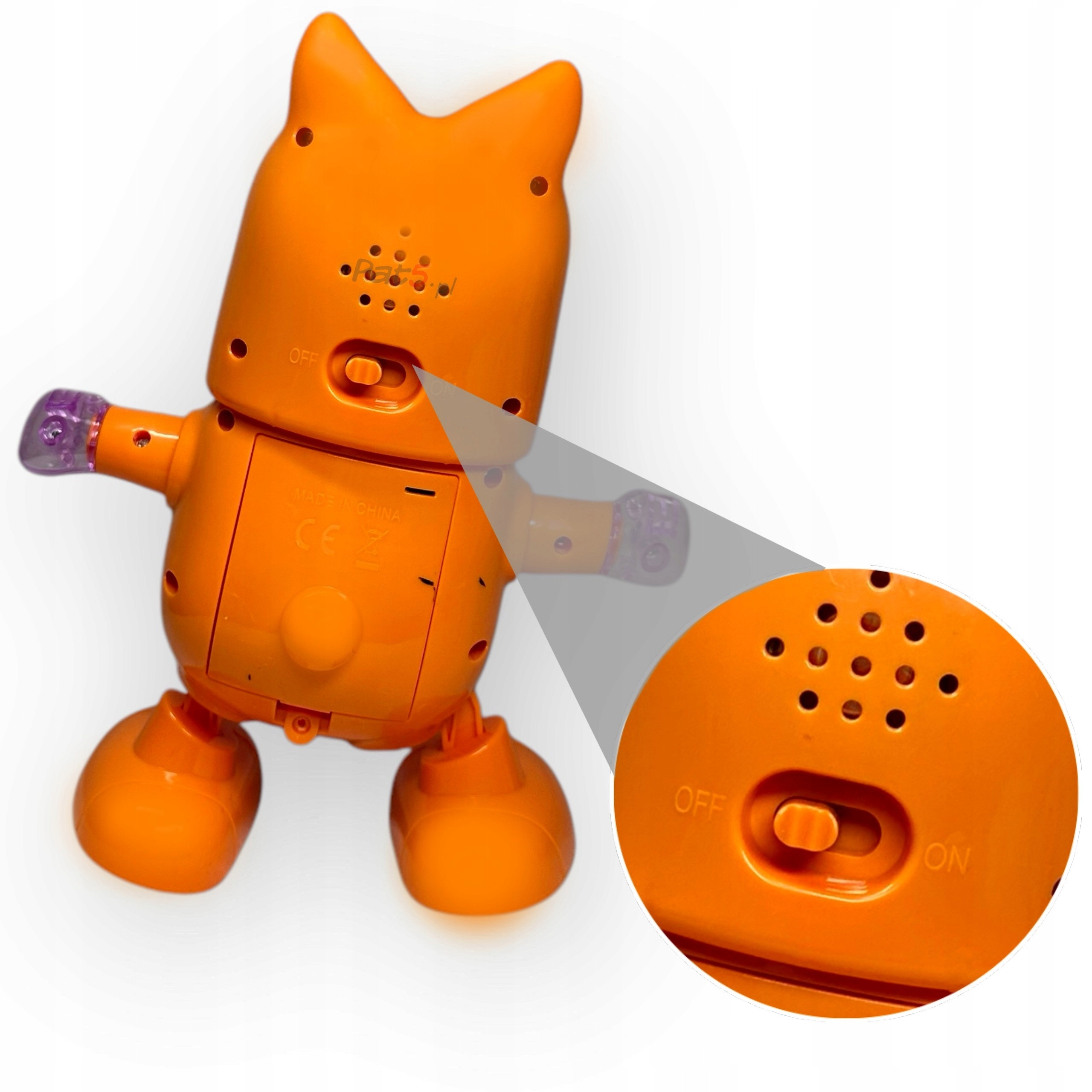 Tryb światła, muzyki i ruchu – piesek gra rytmiczną muzykę, porusza się w prawo i w lewo, podnosi naprzemiennie ręce, a po kilku krokach zatrzymuje się i kręci brzuszkiem.