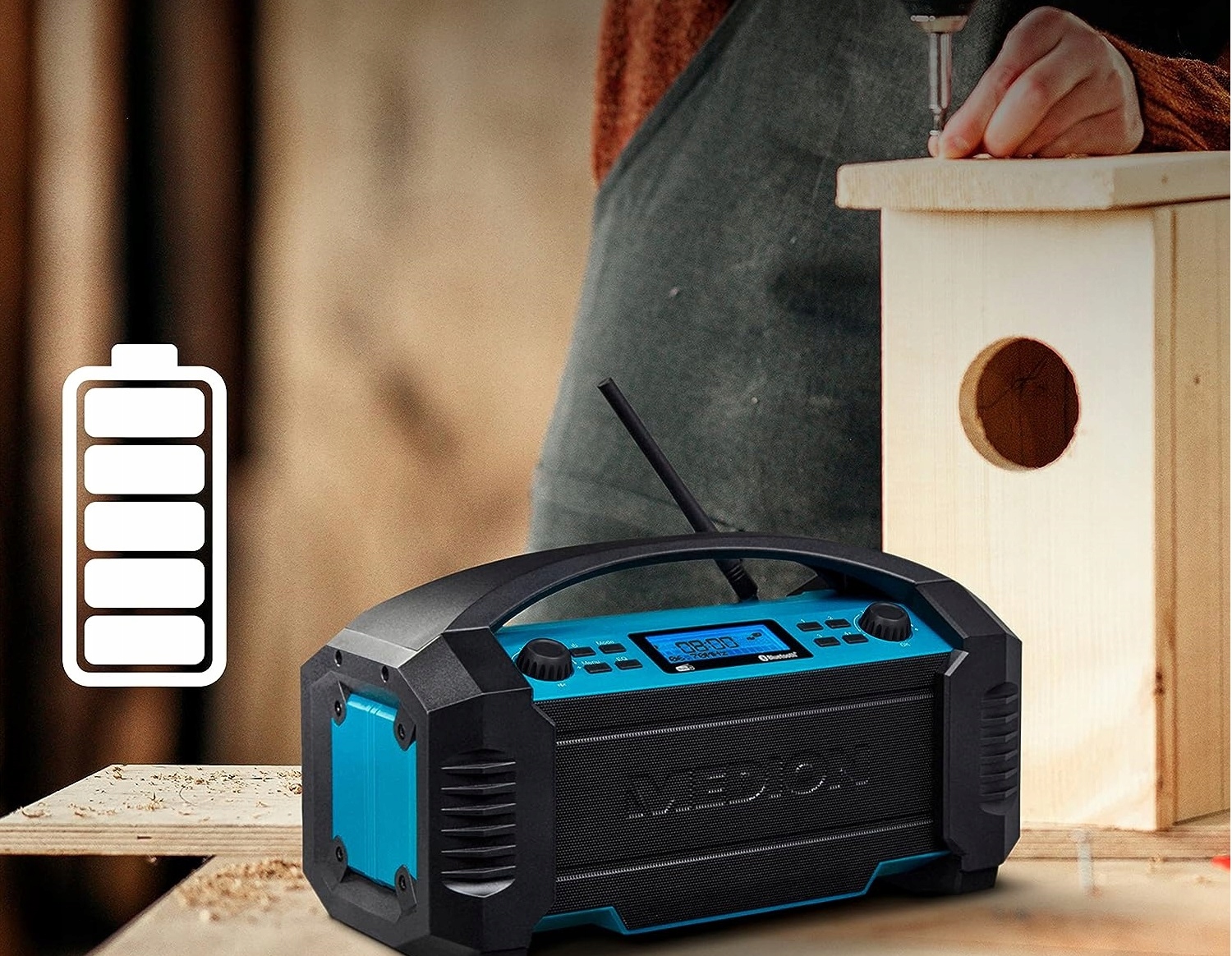 Radio budowlane MEDION® MD43320 doskonale nadaje się do użytku poza domem. Czy to na budowie, w ogrodzie, czy na biwaku – urządzenie jest idealne do każdego zastosowania! Dzięki silnej ochronie IP54 przed rozpryskami wody i kurzem, głośnik jest przystosowany do pracy w trudnych warunkach.