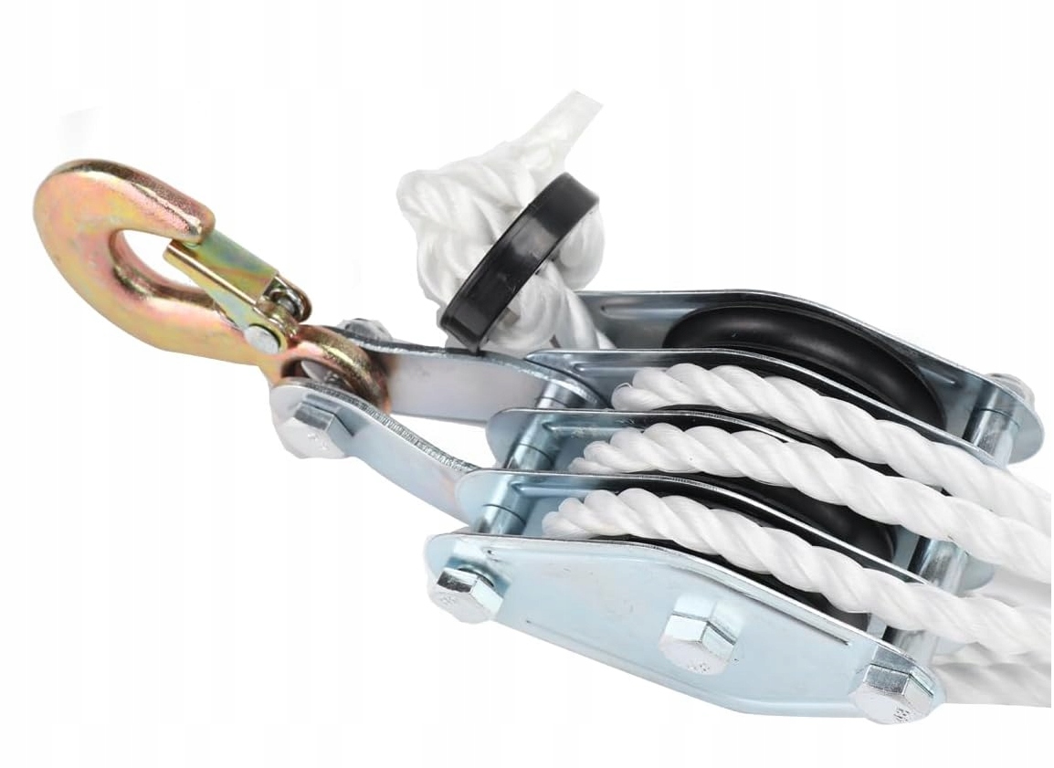 Najwyższa jakość: System kół pasowych wciągnika wykonany jest z wysokowytrzymałej stali ocynkowanej oraz polipropylenu, co zapewnia trwałość i odporność na zużycie. Stalowa obudowa umożliwia płynną pracę i zapobiega strzępieniu liny, gwarantując niezawodne i solidne działanie.