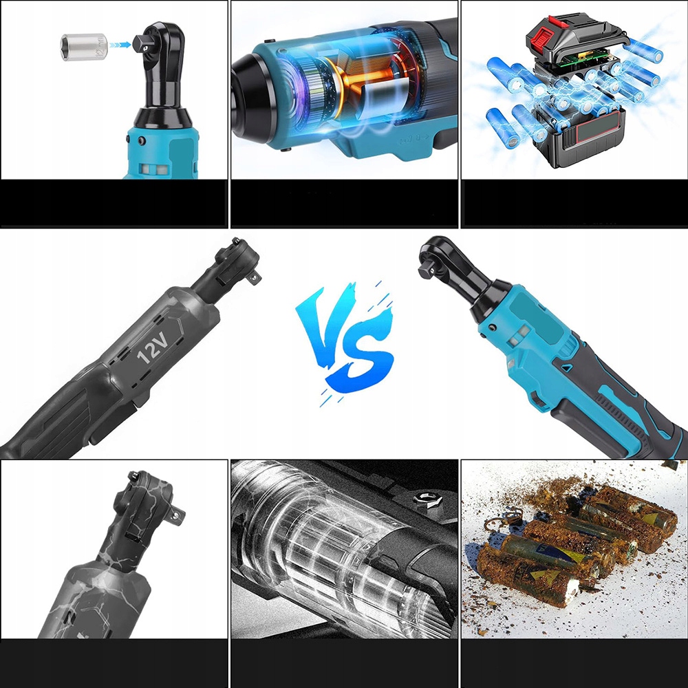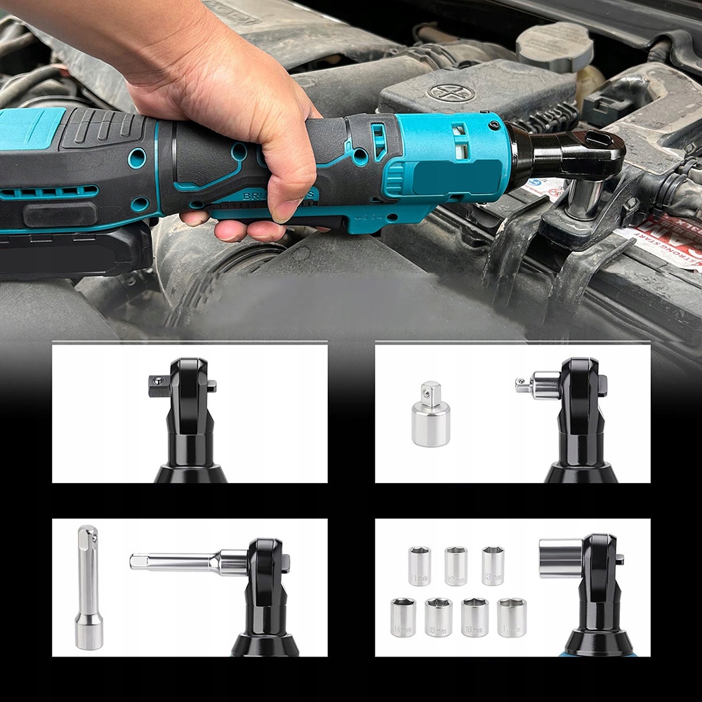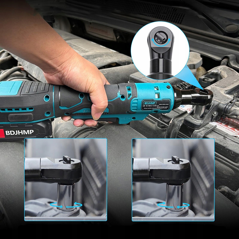 - Przełącznik kierunku obrotów na głowicy grzechotki umożliwia łatwą regulację kierunku. Uchwyt bezkluczykowy umożliwia szybką i łatwą wymianę nasadek.