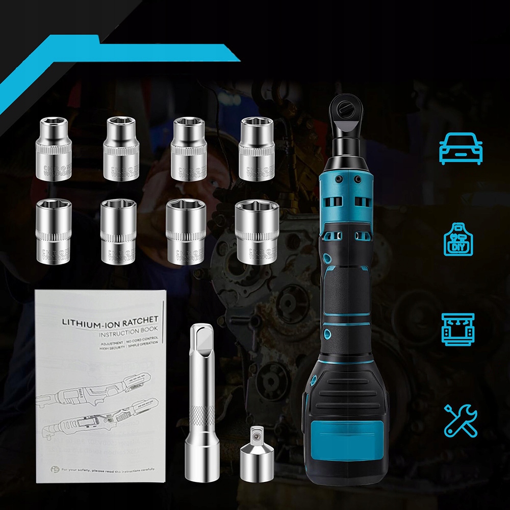 - W zestawie znajduje się 8 nasadek metrycznych (8/9/10/11/12/13/14/15 mm), 1 przedłużka i 1 adapter (3/8" do 1/4"), co ułatwia dotarcie do trudno dostępnych miejsc.