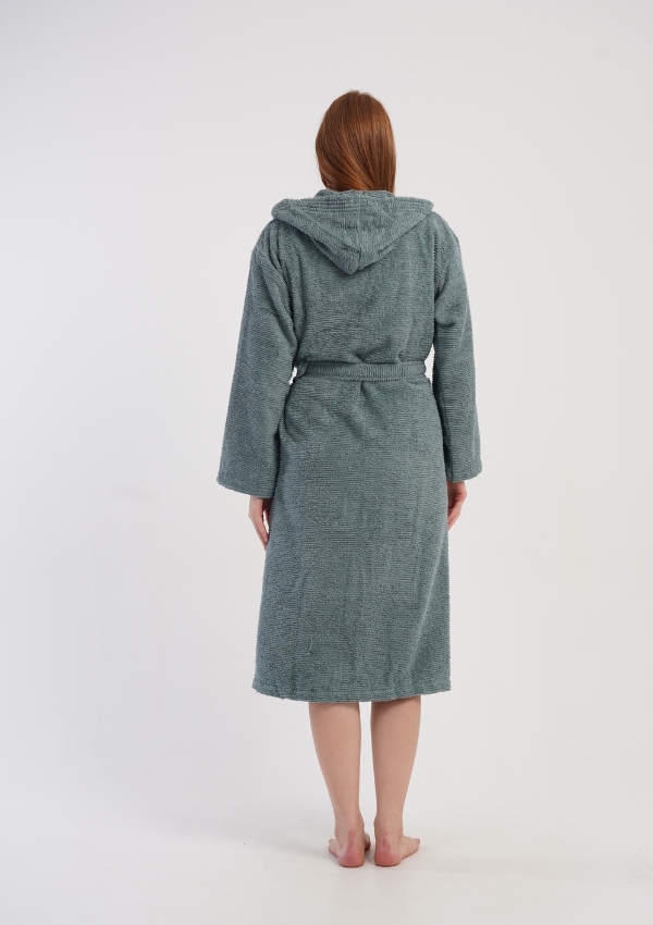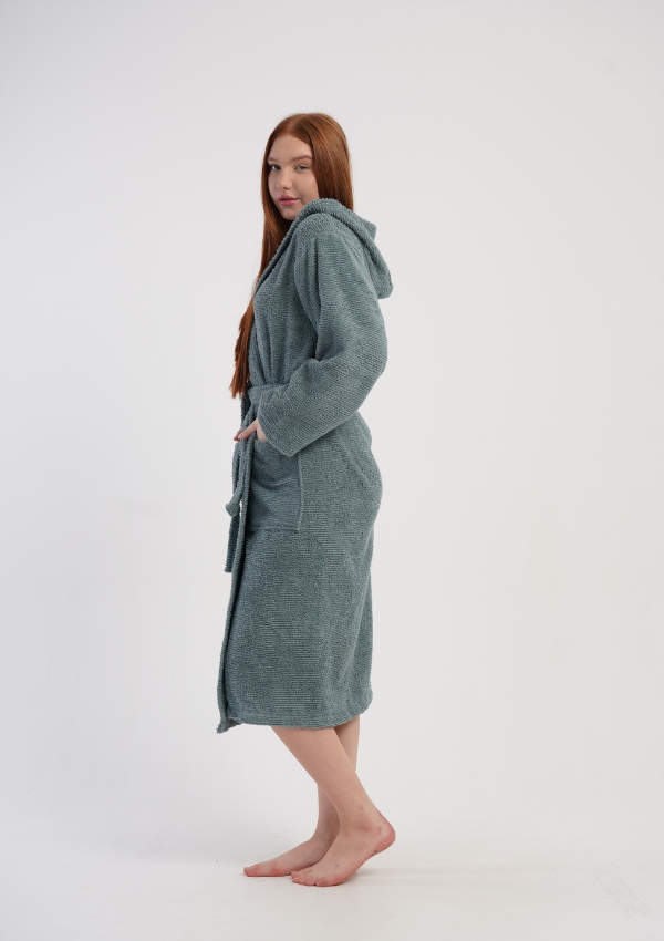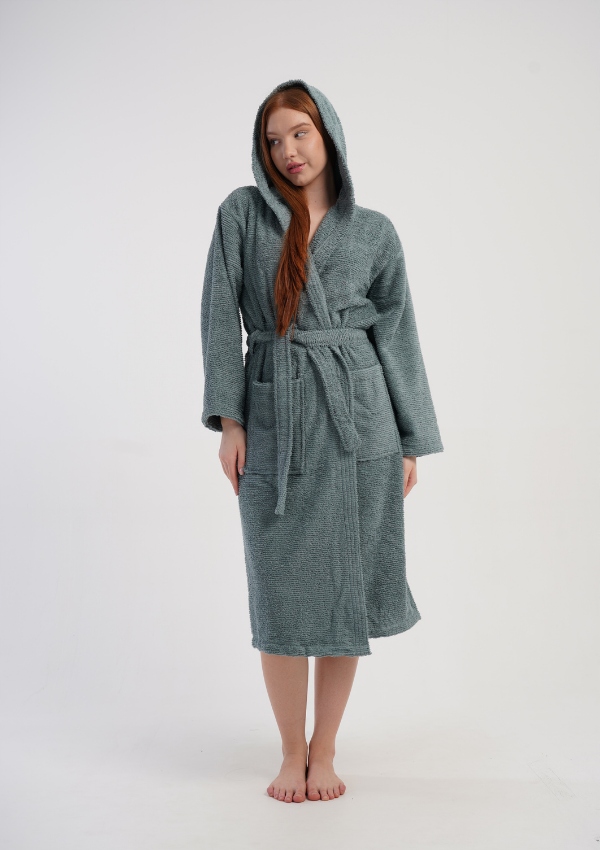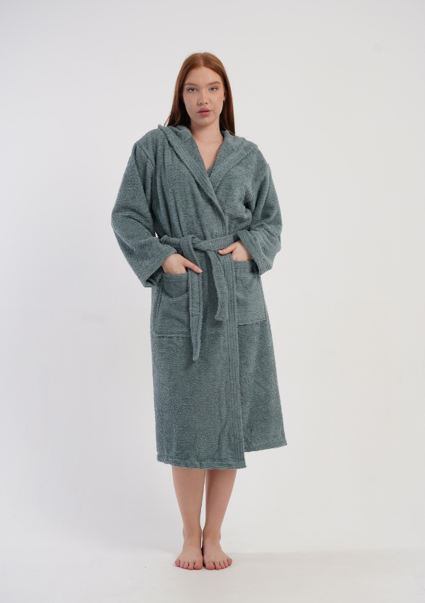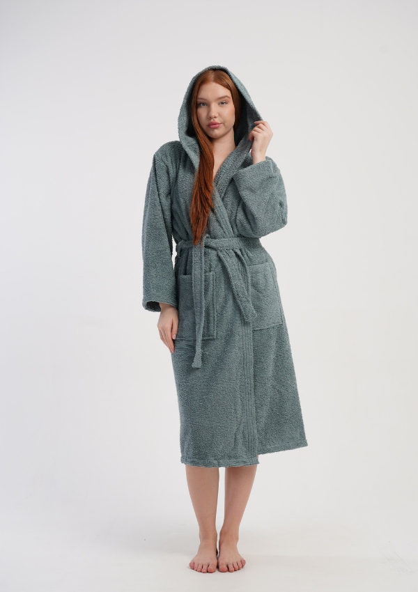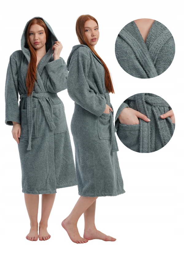 Odkryj wyjątkowy komfort, jaki zapewnia stylowy szlafrok damski z miękkiej bawełny typu bukle. To idealna propozycja dla kobiet, które cenią sobie naturalne materiały, ciepło oraz elegancki wygląd na co dzień. Model wyposażony jest w kaptur, który dodatkowo otula i chroni przed chłodem, a pasek w talii umożliwia idealne dopasowanie do sylwetki.