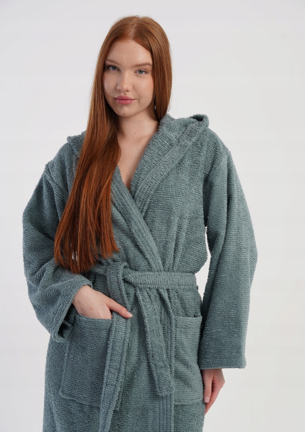 Dwie pojemne kieszenie zapewniają wygodę w codziennym użytkowaniu — niezależnie od tego, czy zakładasz szlafrok po kąpieli, czy podczas leniwego poranka. Jego stonowany, głęboki zielony kolor nadaje mu nowoczesnego i stylowego charakteru, czyniąc go doskonałym wyborem zarówno na prezent, jak i do domowej garderoby.