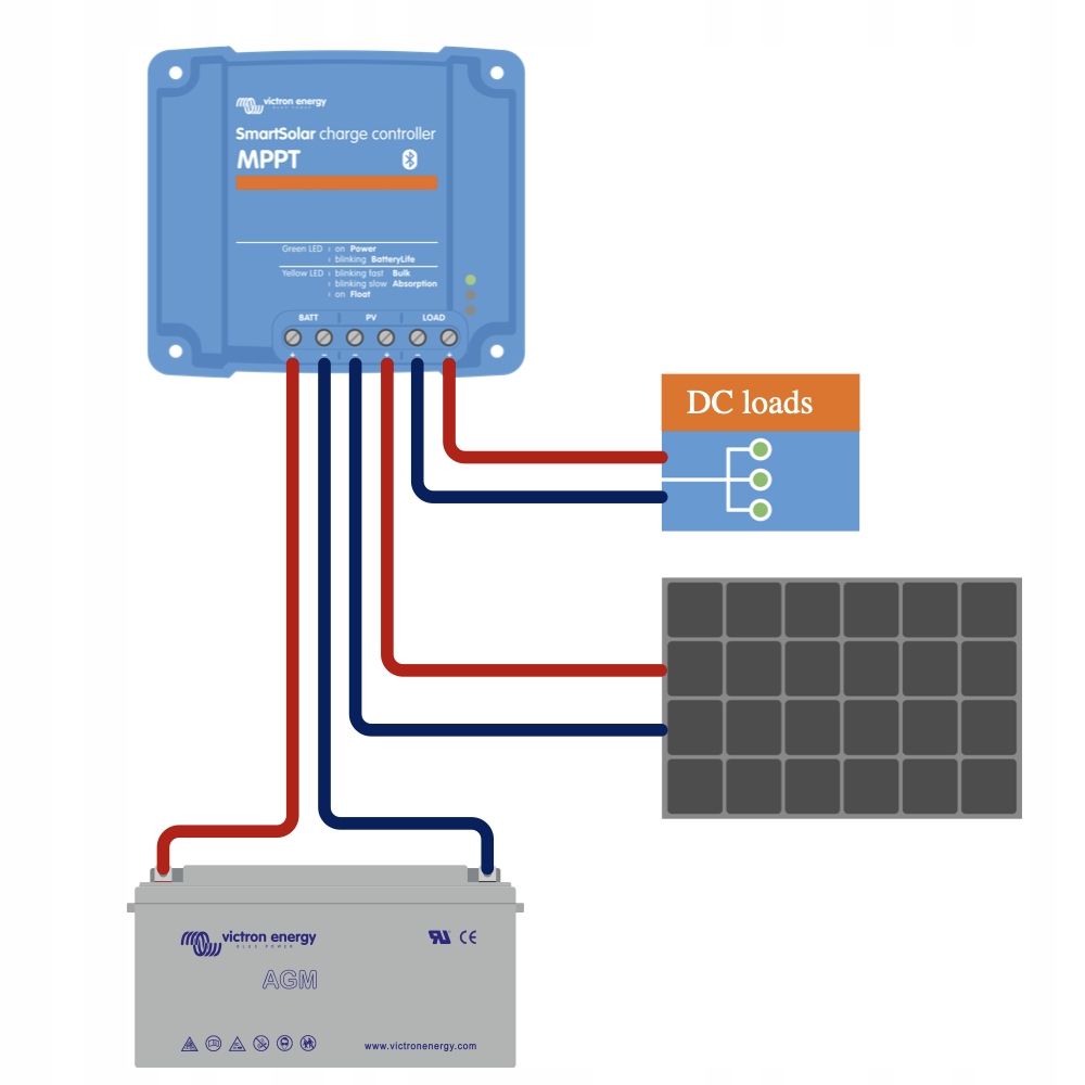 SmartSolar to urządzenie służące do ładowania akumulatora z paneli solarnych. Nadwyżka energii wytworzonej z paneli solarnych w ciągu dnia jest dzięki niemu gromadzona w akumulatorze aby skorzystać z niej kiedy produkcja z fotowoltaiki jest już niewystarczająca lub nie ma jej wcale. Solarny regulator ładowania możesz także wykorzystać w obecnym systemie zasilania swojego pojazdu lub łodzi odciążając alternator a także w innych systemach np. wykorzystujących agregat prądotwórczy lub sieć operatora aby wydłużyć czas pracy „na baterii”.