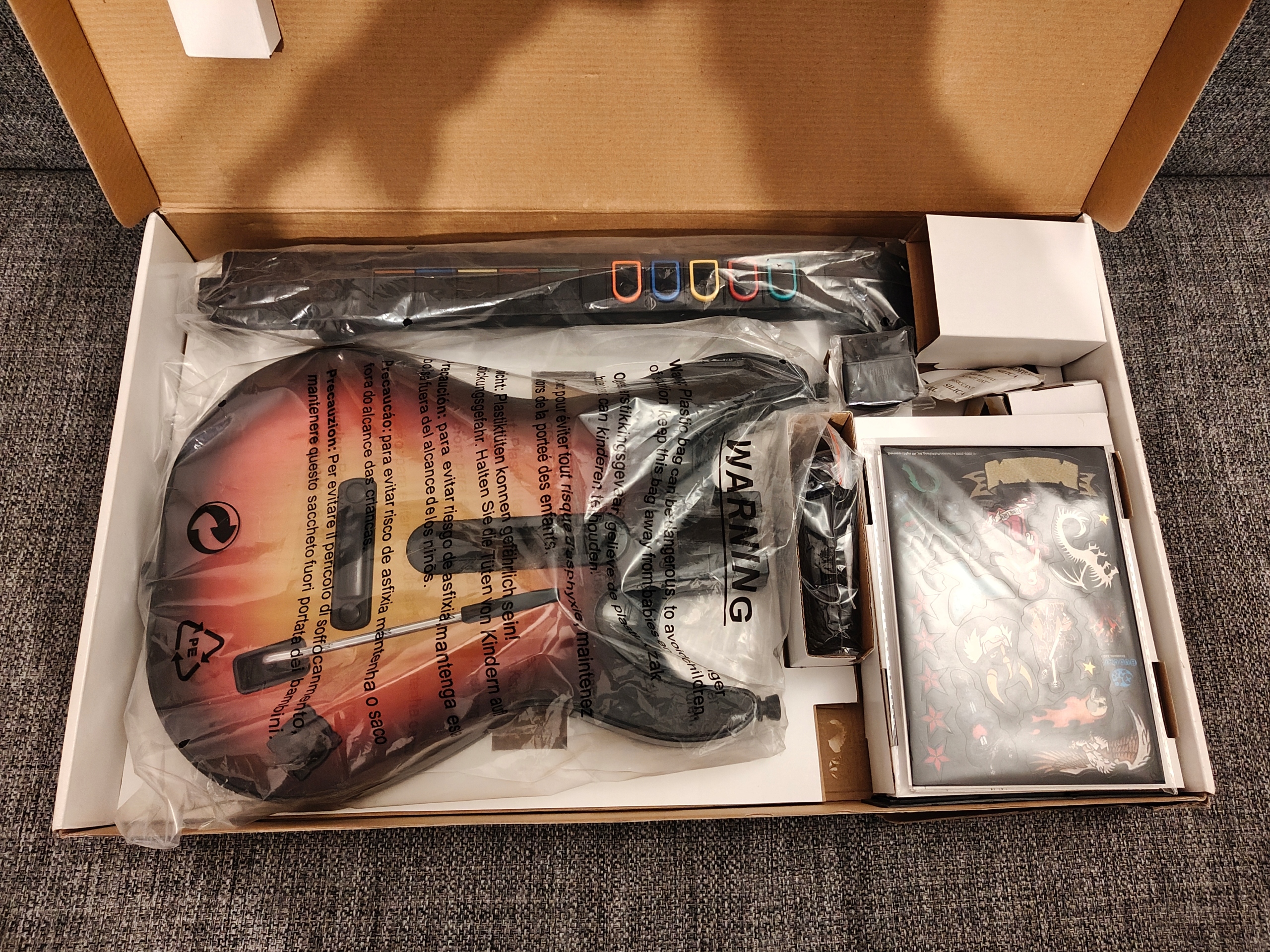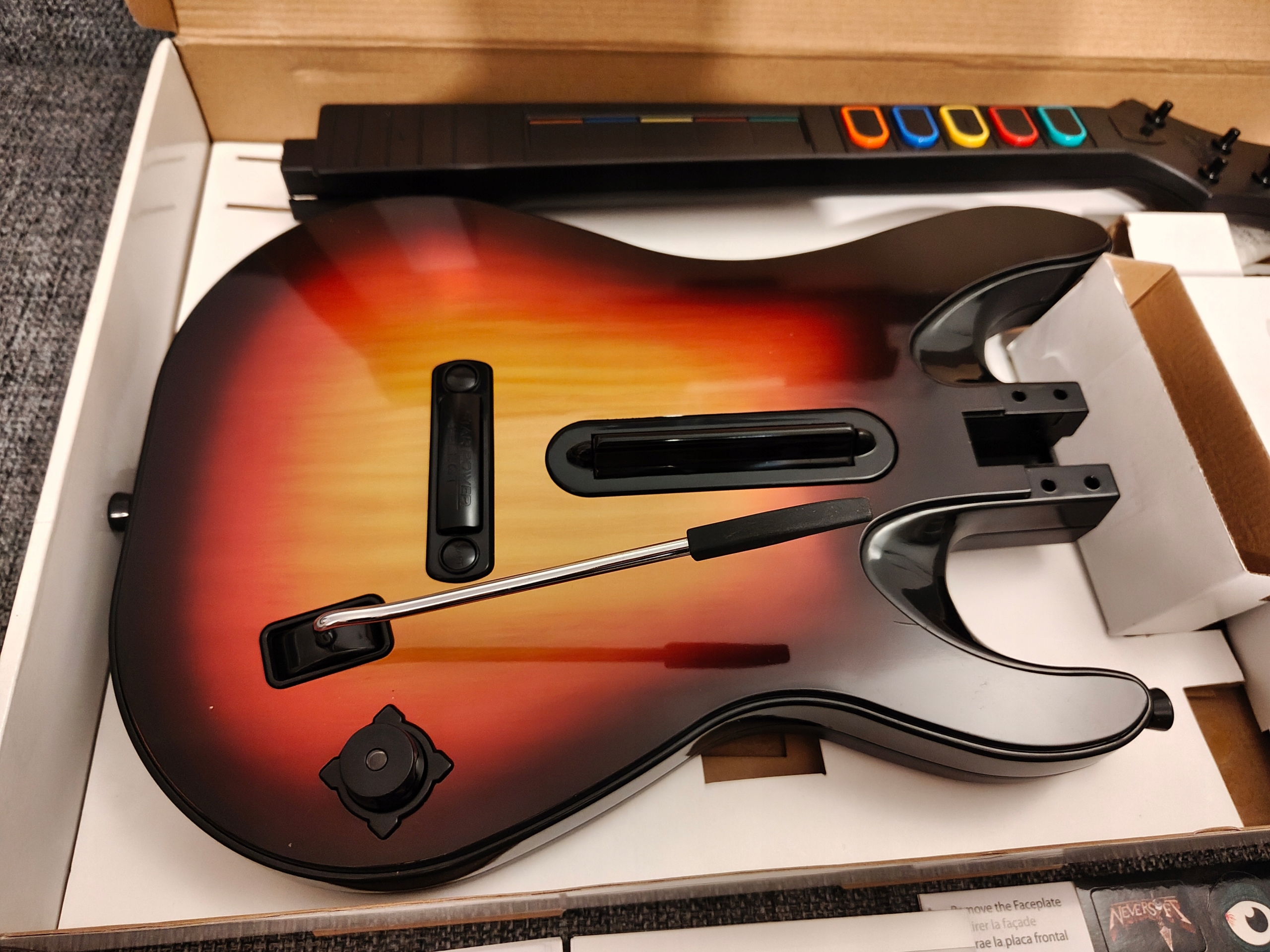 Gitara posiada ślady użytkowania, lączy się z konsolą bez żadnego problemu.